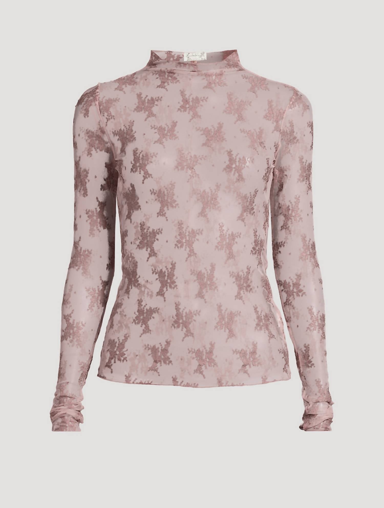 Great fit, cute design, soft fabric. You'll love everything about this long sleeve tee. Introducing the Two Tone Lady Lux Layering Top by Free People, a sultry mesh creation perfect for adding a touch of allure to any ensemble. This fawn-colored tee features a high neckline, long sleeves with thumbhole details, and intricate floral embroidery. Crafted from 47% Nylon, 37% Polyester, and 16% Elastane, it offers a beautiful stretch and fit. Country of Origin not specified. Care: Hand wash. Closure: Pull-on.