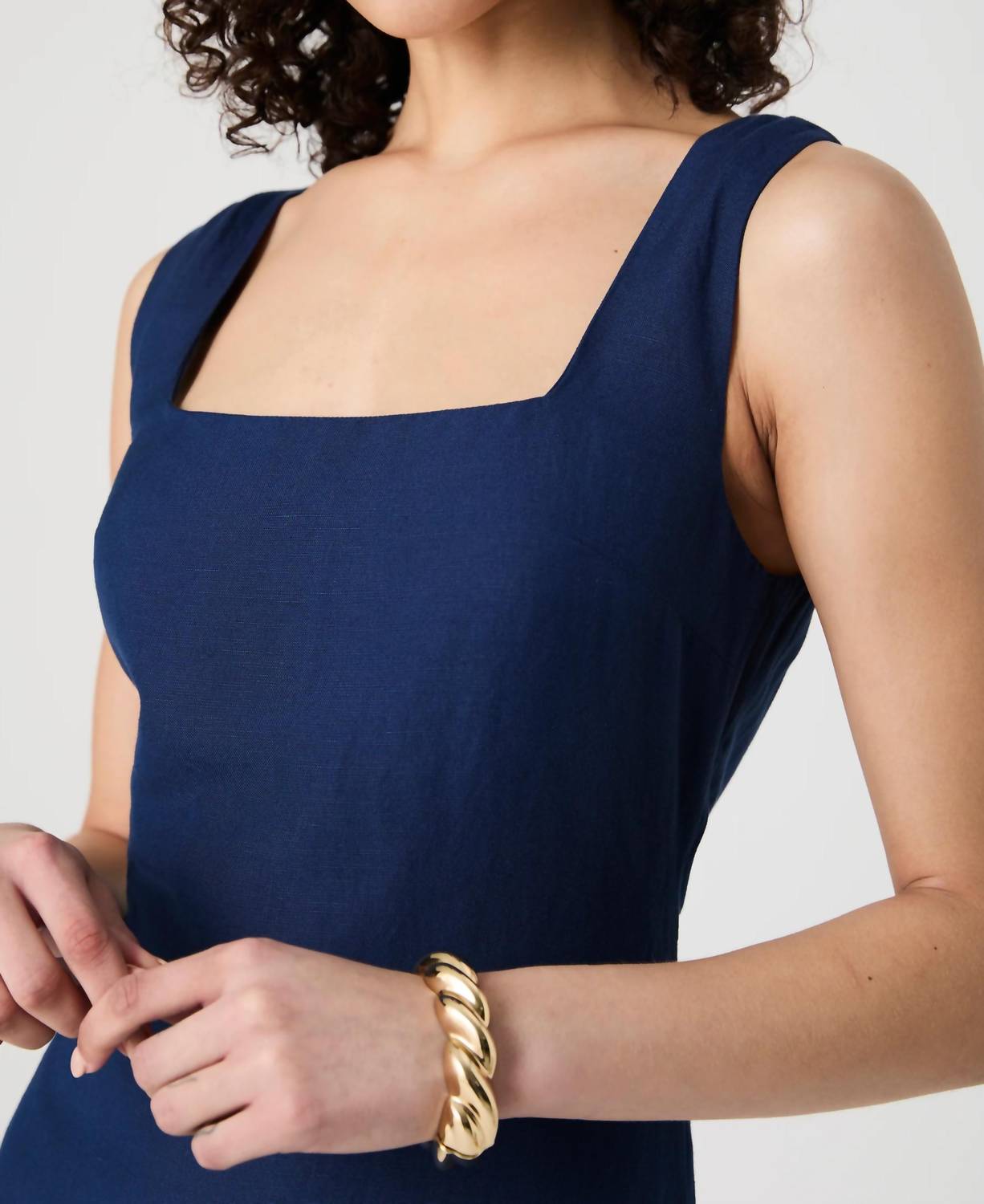 The perfect mini dress for those warmer months. Introducing the Birdie Linen Square Neck Mini Dress by French Connection, perfect for elevating your summer wardrobe. This sleeveless shift dress is crafted from a soft and airy 60% Viscose, 40% Linen blend, finished in a sophisticated Midnight Blue. Featuring a square neckline and lined design, it closes with a discreet side zipper. Care for your dress by washing as cotton, laying flat to dry, and ironing on the reverse side.