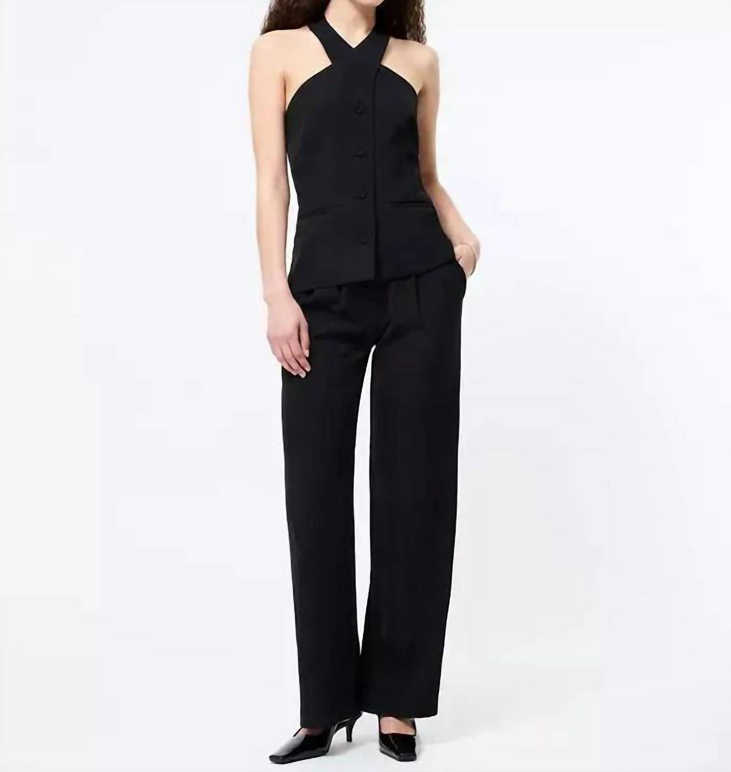 A vest so versatile you can mix and match it with almost any outfit and it will feel brand new every time. Elevate your style with the Harry Suiting Criss Cross Vest Top by French Connection, a sophisticated choice in timeless black. This sleeveless vest boasts a distinctive crisscross halter neck design and is crafted from durable polyester. It features convenient button closures and two front welt pockets for added functionality. Easy to care for, it's machine washable and can be tumble dried, making it perfect for spring dinner parties.