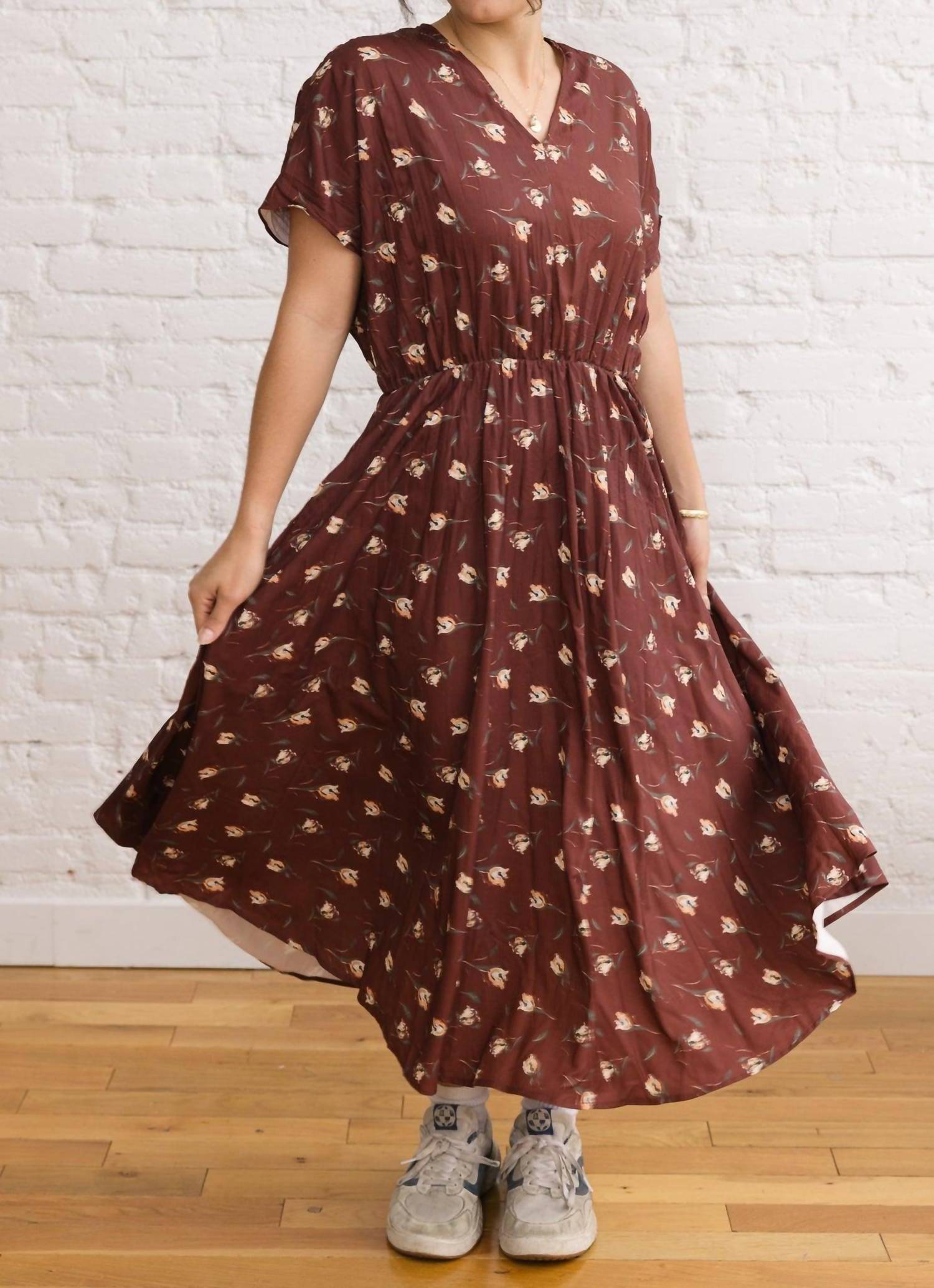 Who doesn't love a good maxi dress? This one you'll be reaching for season after season. Introducing the Jane Dress by Fun 2 Fun, a perfect blend of vintage charm and everyday ease. This maroon maxi dress features short sleeves and a v-neckline, accented by a delicate white floral print for a timeless appeal. Crafted from 100% Polyester with a relaxed fit and pull-on closure, it offers effortless style for any occasion. Care instructions include machine wash cold and line dry to maintain its elegant silhouette.