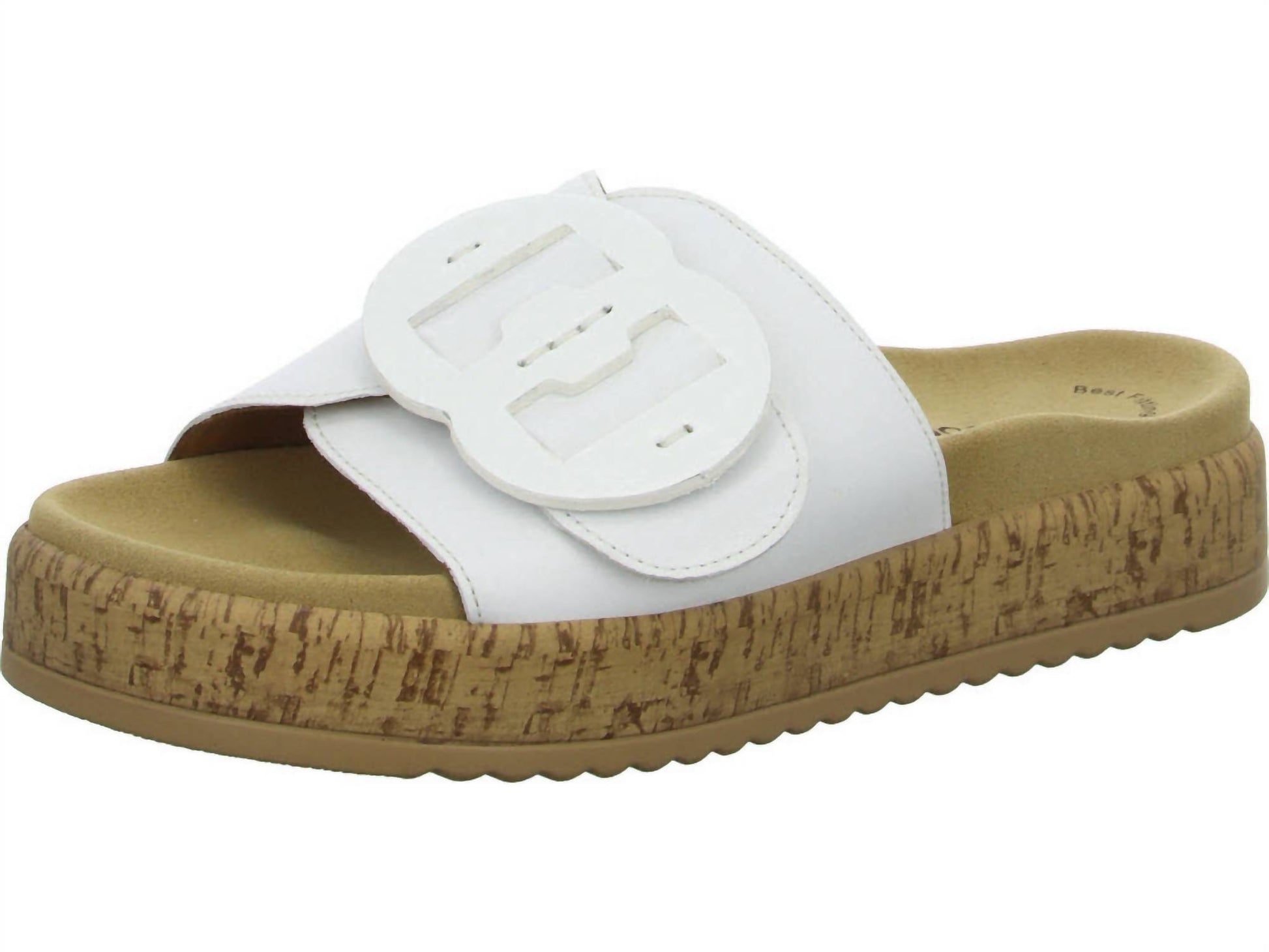 This sandal will take you from brunch to dinner and everything in between. Step into summer with the Women's Slip On Sandal by Gabor in a timeless weiss (white) hue, perfect for your travel adventures. Designed for women seeking boho chic style, these sandals feature an open toe and medium shoe width for comfort. Ideal for the summer season, they effortlessly blend fashion and functionality. Enjoy the free-spirited vibe as you pair them with your favorite outfits on any sunny occasion.