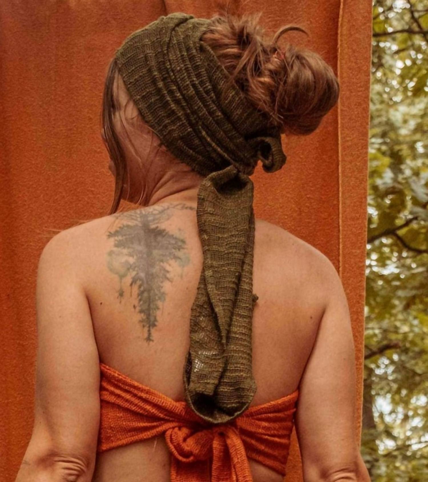The Beachy Recycled Cotton Bohemian Mesh Hair Wrap or Bandeau Top by Gardenbelle offers a chic and versatile addition to your accessories collection. Crafted from 100% cotton, this thick-thin woven piece can be worn as a wrap top, headscarf, or belt, showcasing its multiway functionality. Measuring 6 inches in width and 90 inches in length, it boasts a striking organic look in a captivating green hue. Proudly made in the United States, this accessory embodies both style and sustainability.