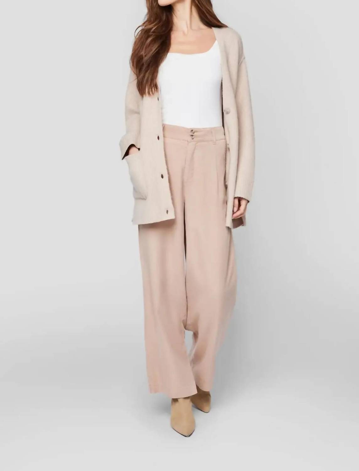 A straightleg pant that workes season after season. Dress these up with your favorite blouse or keep it casual with your go-to tee. Introducing the Sabine Pants by Gentle Fawn, a chic addition to your workwear collection in a sophisticated tan. These full-length, wide-leg pants feature a high rise with an elasticated back waist for a relaxed fit, complete with a front fly that has a zipper and hook & bar closure. Crafted from 100% Tencel, these pants embody sustainability, with ECOVERO fibers that boast a reduced environmental impact compared to generic rayon. Care for these stylish trousers with gentle machine wash on a cold cycle and tumble dry low.