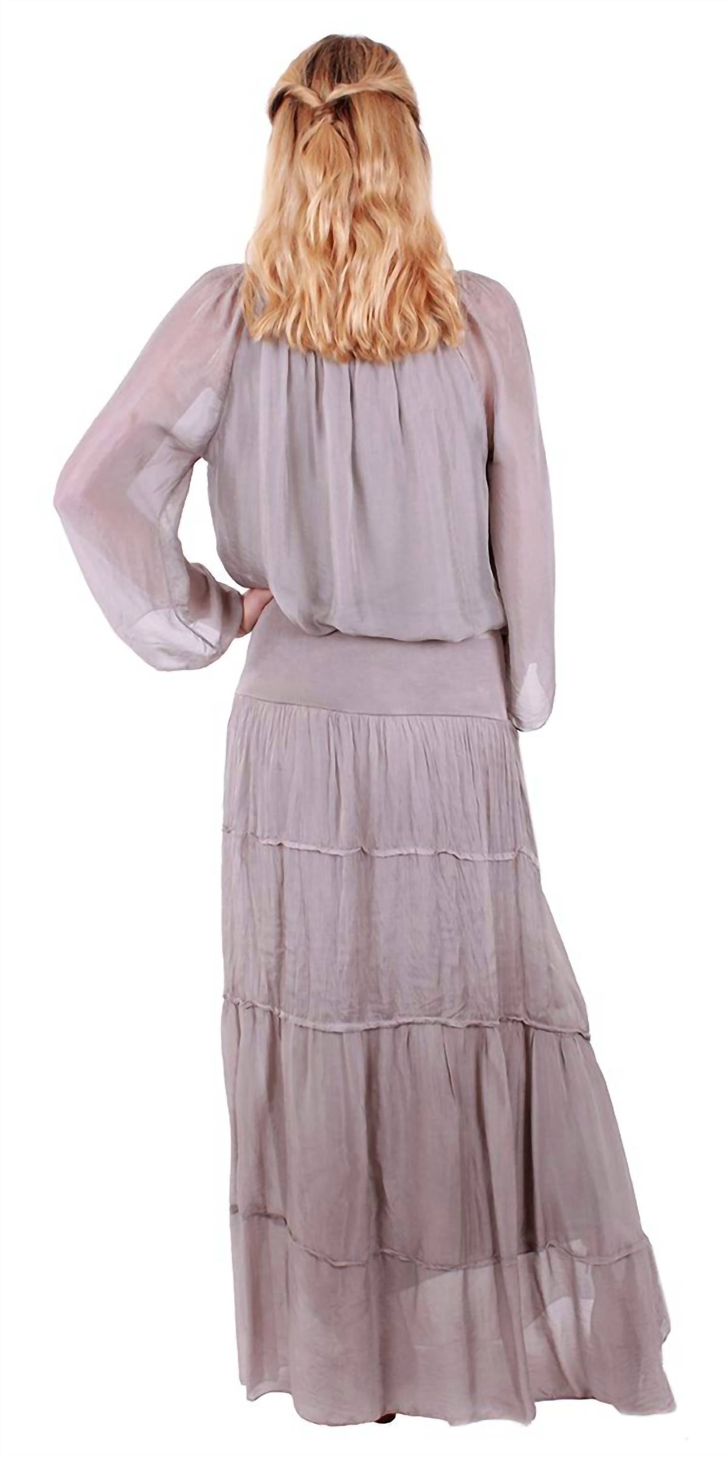 Flowy, comortable and stylish. This maxi skirt is a fan favorite. Discover the Solima Long Tiered Maxi Skirt by GIGI MODA, an embodiment of quiet luxury in a refined taupe hue. Crafted with a 100% silk overlay and a blend of 95% viscose and 5% elastane underlay, this skirt is made in Italy, ensuring unparalleled quality. Designed for comfort and ease, it features a versatile pull-on closure and is suitable for a range of occasions, from summer gatherings to holiday parties. Care for this sophisticated piece through dry cleaning to maintain its elegance and allure.