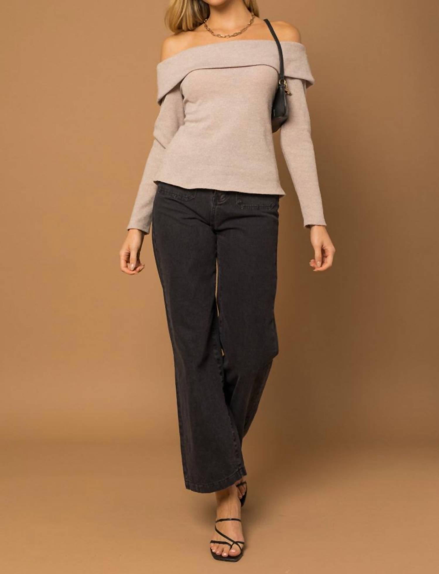 Pair this with your favorite jeans and slides for your next girls night out. Elevate your evening look with the Long Sleeve Off Shoulder Back Cross Glitter Rib Top by GILLI. This piece features a stylish off-shoulder neckline and long sleeves, enhanced with a subtle glitter detail in a sophisticated nude hue. Crafted from a viscose blend with 50% viscose, 27% nylon, and 23% polyester, it provides a comfortable fit with a touch of allure. Originating from an unlisted origin, this top ensures a perfect fit with its pull-on closure. Care for this elegant piece by hand washing and line drying to maintain its shimmering elegance.