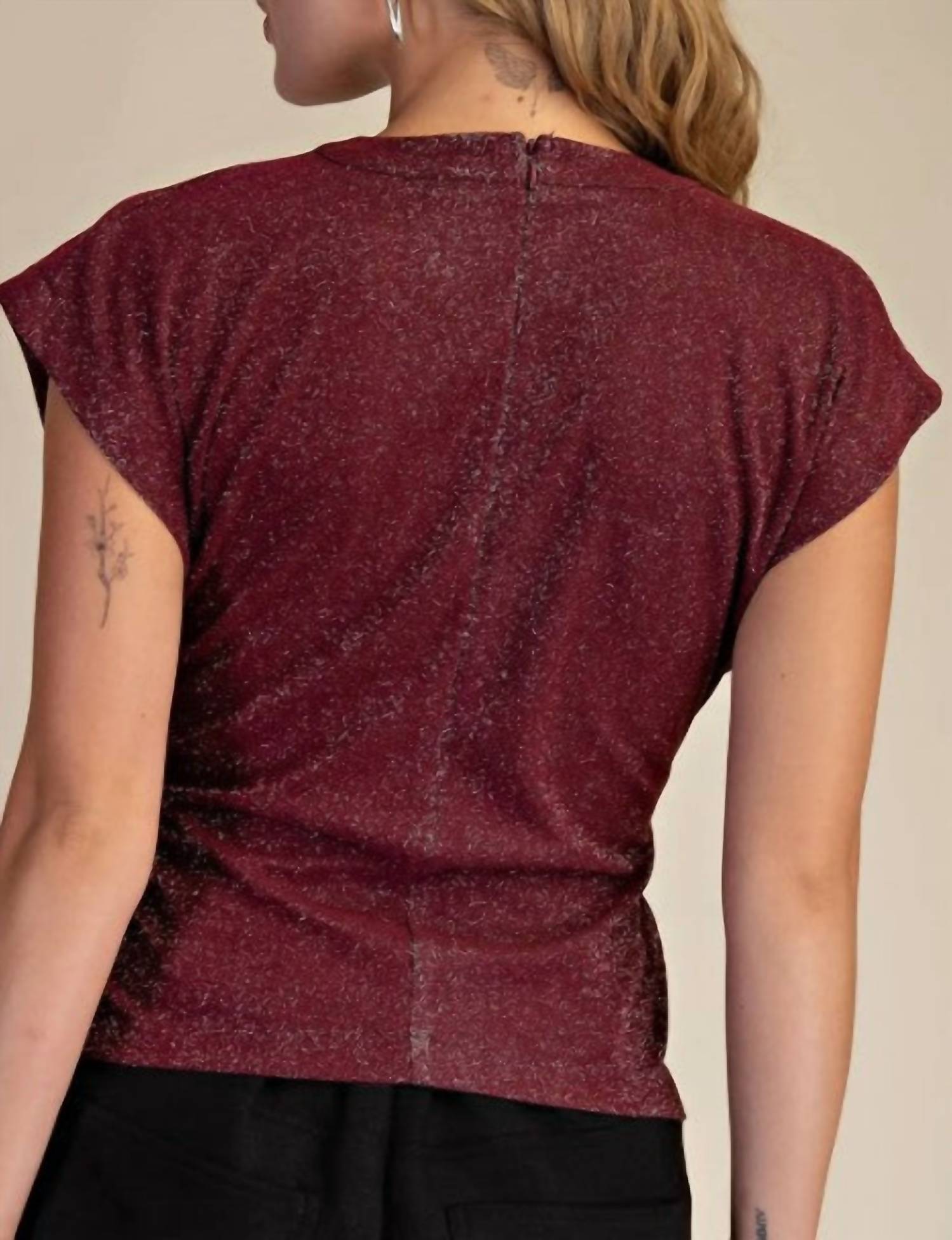 A versatile blouse that works from desk to dinner! Introduce a touch of elegance to your wardrobe with the Cap Sleeve Pleated Blouse by GLAM, perfect for a cocktail party. This solid wine blouse features cap sleeves and a sophisticated crewneck silhouette with a minimalist charm. Originating from an undisclosed location, it ensures a polished fit with its zip closure. For optimal care, this piece requires dry cleaning only.