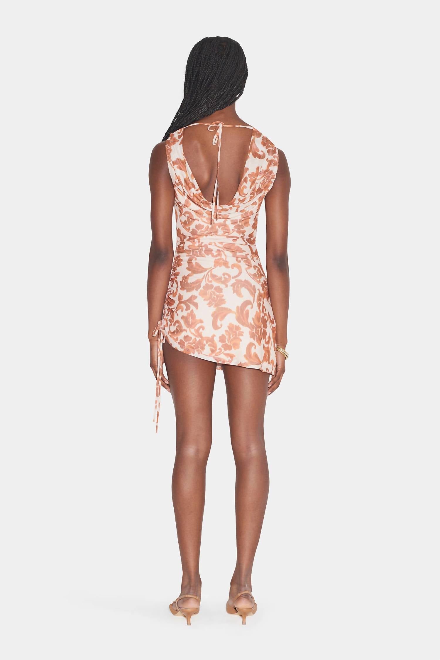 The kind of easy and flattering dress you'll be reaching for all season long. This mini dress is crafted from signature recycled mesh and designed with an adjustable cowl neckline at both the front and back, secured by back neck ties to keep it perfectly in place. A side-seam drawstring at the hem allows for customizable styling, while the asymmetric hemline adds a modern, dynamic touch. Fully lined for comfort and coverage, it’s made from 95% recycled polyester and 5% spandex, with a lining of 93% recycled polyester and 3% spandex.