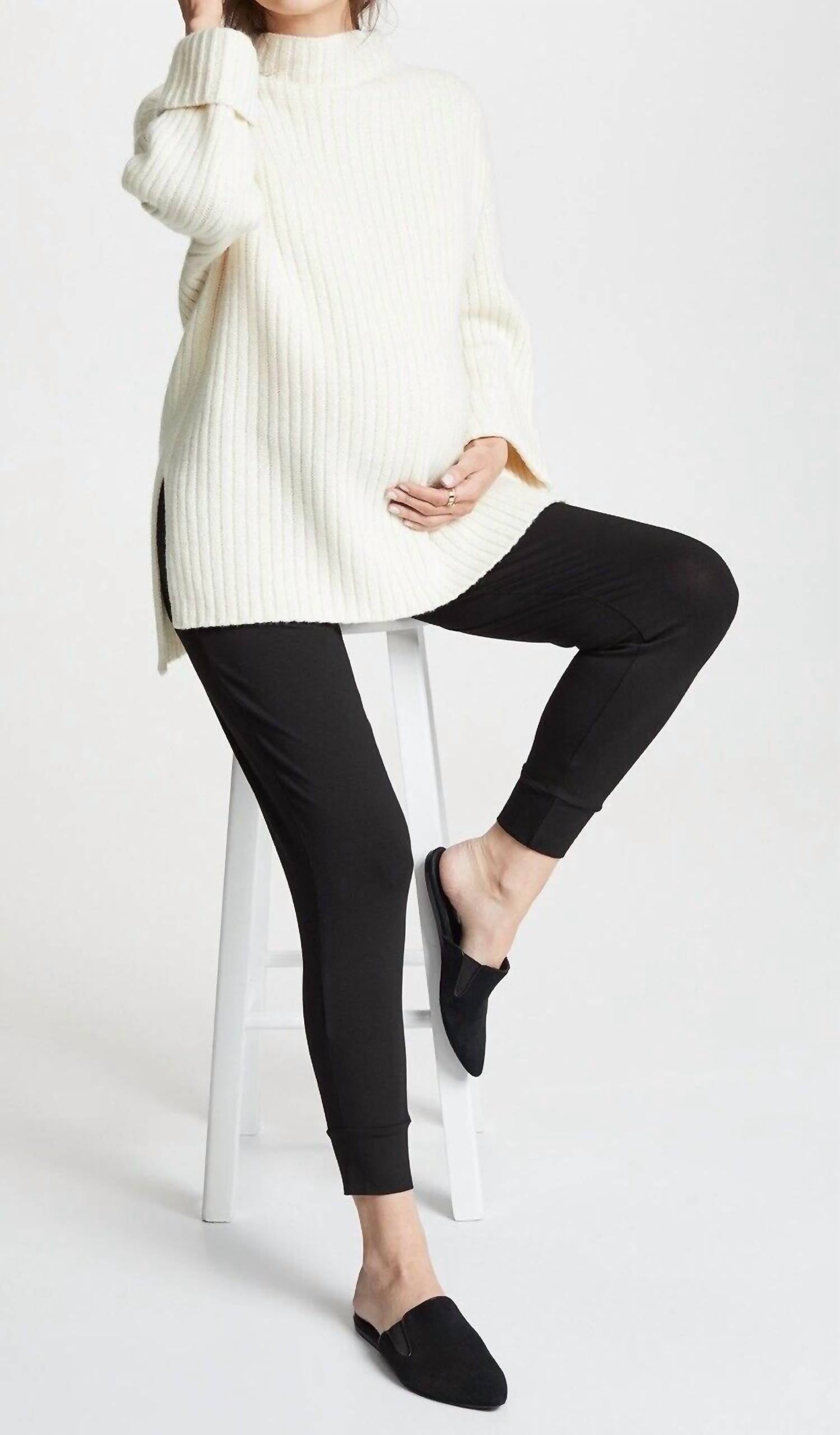 Fit to perfection and effortlessly chic. The Cabin Sweater by Hatch is an elegantly minimalist piece designed for maternity comfort and style in a warm vanilla hue. Perfect for fall dinners or Thanksgiving gatherings, this textured turtleneck sweater features long sleeves and a convenient pull-on closure. Ideal for pregnant women seeking comfort and fashion. For effortless maintenance, simply machine wash as needed. One size.