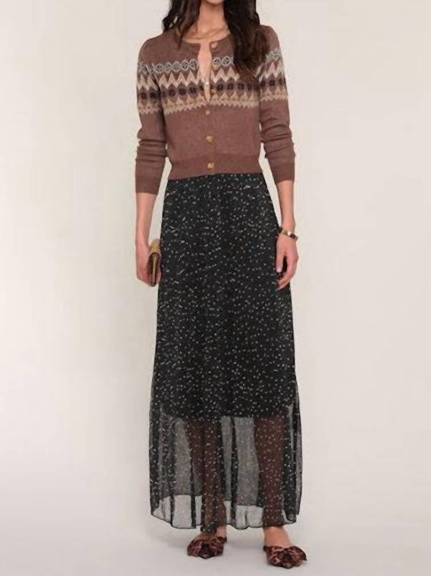 Flowy, comortable and stylish. This maxi skirt is a fan favorite. Introducing the Heartloom Kaine Maxi Skirt, an elegant creation for your spring wardrobe. This skirt is crafted from flowing polyester semi-sheer chiffon, adorned with subtle gold lurex dots for a shimmering effect. With a maxi length and a midi-length lining, it combines style with the right amount of coverage. The pull-on closure with an elastic waistband ensures comfort and ease of wear. Care for this beautiful piece by machine washing and line drying.