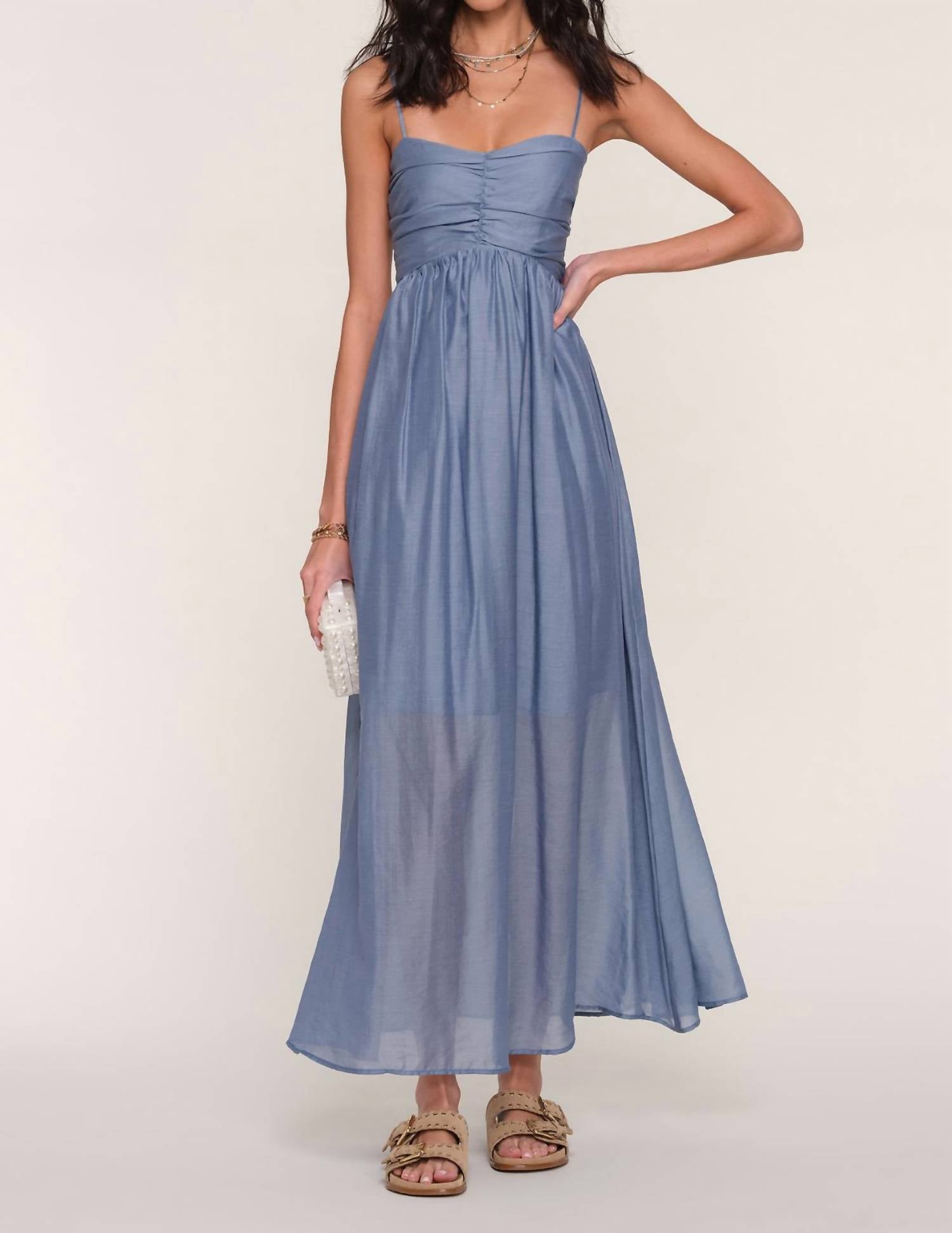 Style this maxi with your favorite statement necklace and sandals for the perfect look. Embrace summer elegance with the Tatiana Dress by Heartloom, a stunning choice for any evening event. This Lake Blue maxi dress features spaghetti straps and a comfortable pull-on closure, with a smocked back panel for added fit and style. Its lightweight composition is crafted from 59% Polyester, 26% Nylon, and 15% Rayon, ideal for keeping cool during warmer months. With a charming sweetheart neckline and a full skirt that reaches the ankle, this dress offers an effortlessly relaxed fit perfect for minimalist aesthetics.