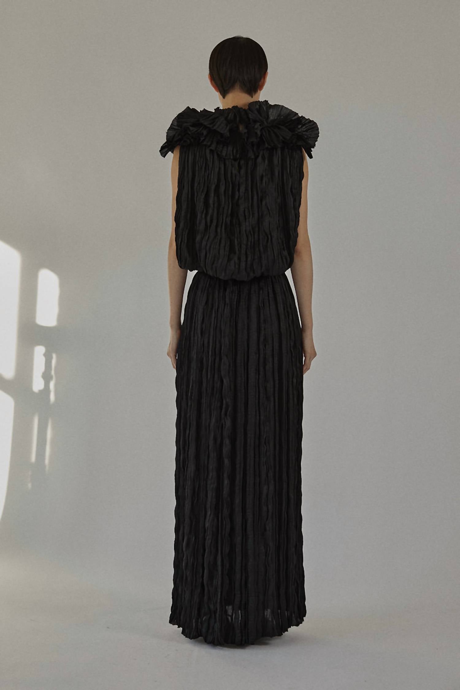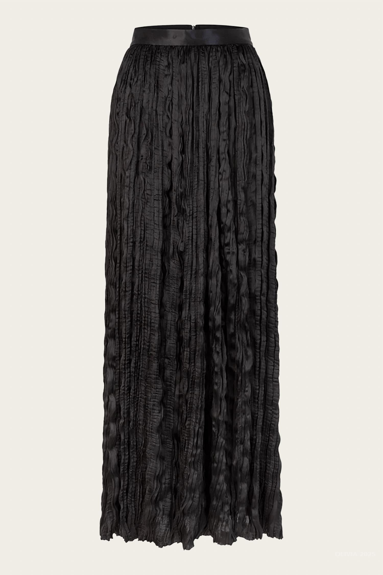 Who doesn't love a good maxi skirt? Introducing the Emma Maxi Skirt by Heirlome, a stylish black piece that exudes sophistication with its floor-length design and crinkle-pleat texture. Composed of 100% polyester, this skirt is equipped with a satin waistband and features an invisible side seam zipper for a seamless closure. Perfect for a summer engagement, its minimalist appeal ensures a timeless look. Care for this imported skirt by dry cleaning only.