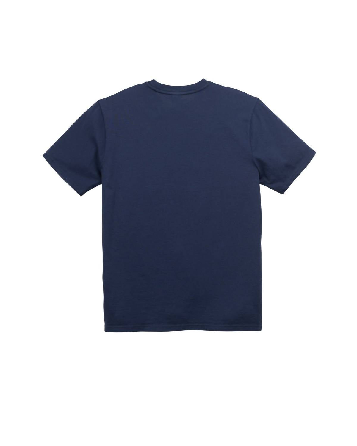 Crafted for style and comfort, perfect for both on and off campus. Sporting a short sleeve design in Dark Navy/Blanc De Blanc. Features a faculty crackle print inspired by vintage college apparel. Made from 100% cotton with a 190 GSM weight. Offers a ribbed crewneck for added comfort. Care is simple with machine wash cold on a gentle cycle with like colors.