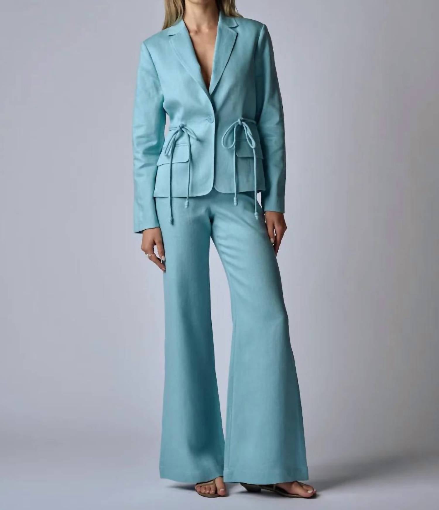Slightly flared pants are all the rage right now and these are no exception. Pair these with your favorite tee for a more casual look, or with your favorite button-up blouse for an evening out. Introducing the Dara Pant by Hevron, a stylish choice for your holiday festivities. These high-rise flare pants in an elegant ice blue offer a timeless silhouette with a composition of 100% hemp, providing both comfort and eco-friendliness. With no pockets, they maintain a sleek, streamlined look, perfect for Spring occasions. Crafted for women who appreciate both fashion and sustainability.