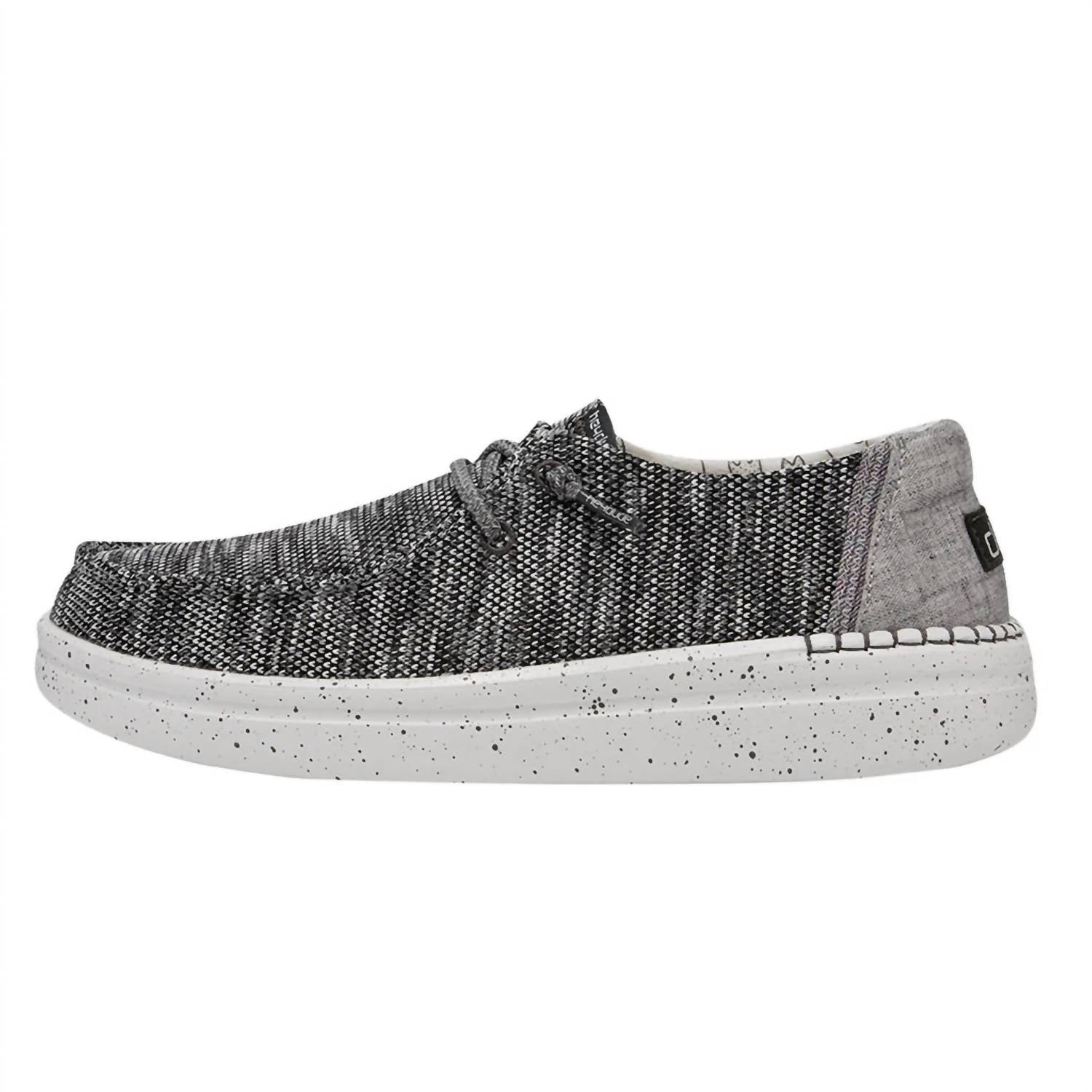 Get your daily steps in with these adorable sneakers. Meet the Women's Wendy Rise Sox by HEY DUDE, a quintessential sneaker blending iconic style with custom details. Featuring a wide fit for comfort, this shoe boasts hand-stitched detailing at the heel and an easy-on system with elastic laces, making it perfect for holiday parties and spring outings. Its grey hue complements various outfits, while the flat, round toe design ensures all-day wearability. Elevate your casual wardrobe without compromising on lightweight comfort.