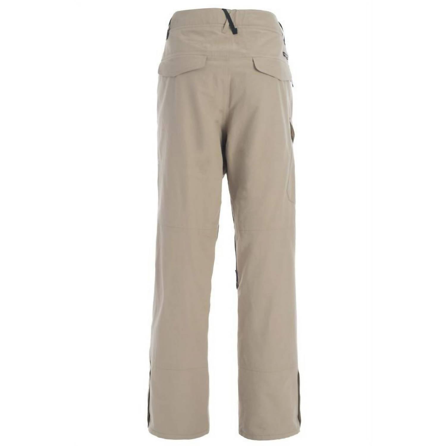 Introducing the Men's Field Pant by HOLDEN, designed for performance and sustainability in a stylish oat color. These pants feature a button closure and are crafted from 100% nylon, offering 10K waterproofing and breathability, with targeted synthetic insulation for warmth. Equipped with zippered leg vents and an adjustable waist, they provide practical comfort for winter adventures. The relaxed fit is complemented by fully taped seams, snow gaiters, and multiple pockets, making these pants a must-have for the Athleisure trend.