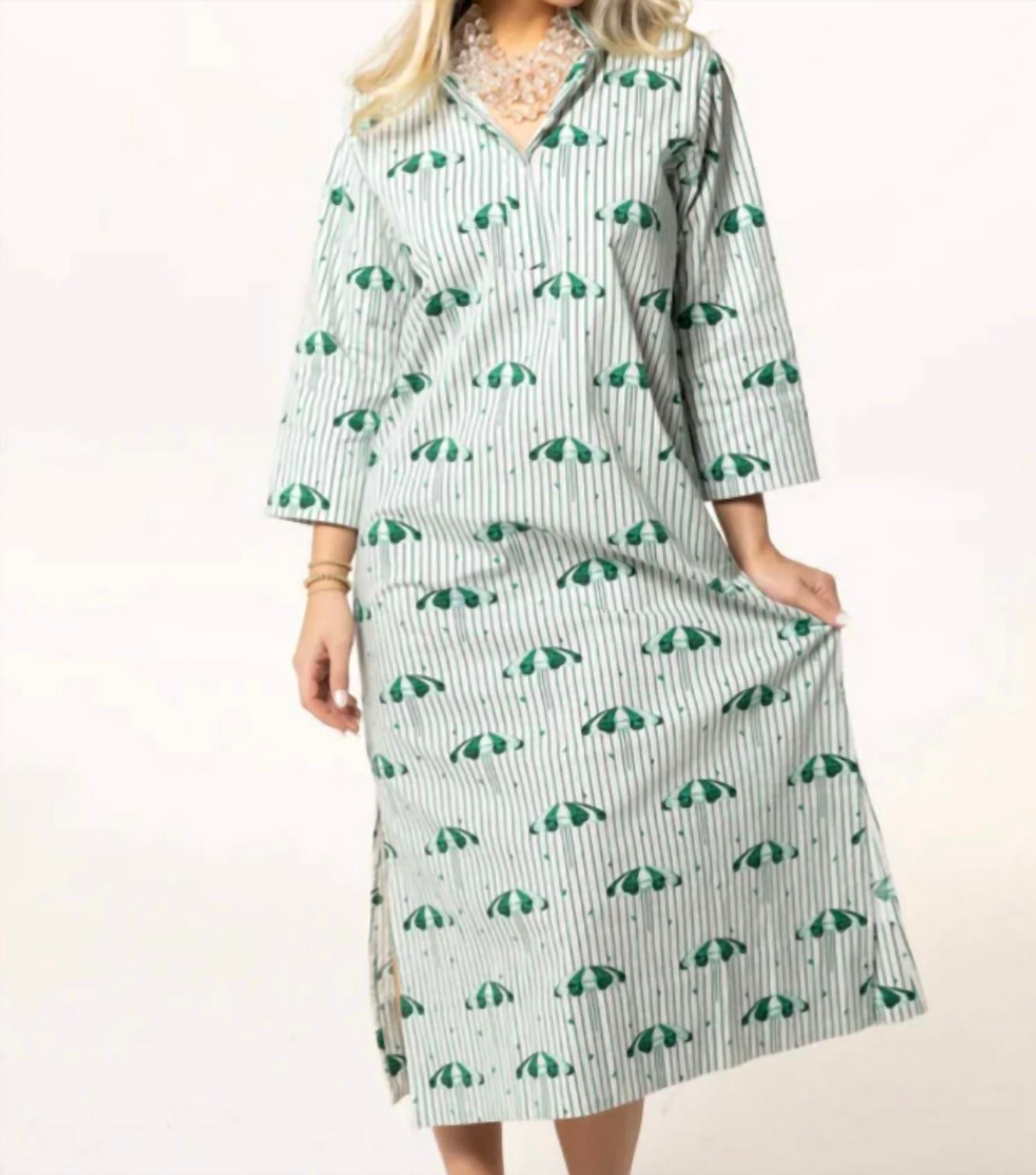 A midi dress so versatile, your options for wearing it are endless. Introducing the Grace Dress-Tee Time by HOLLY SHAE Design, featuring the vibrant prints of Dallis Foshee. This green, patterned midi dress is crafted from a stretchable Cotton Poplin blend and offers three-quarter sleeves for a comfortable fit. With its extra high stand collar and shift silhouette, it makes for an easy "throw and go" piece, perfect for spring travel. Plus, it comes with practical pockets and even includes a sash for added flair.