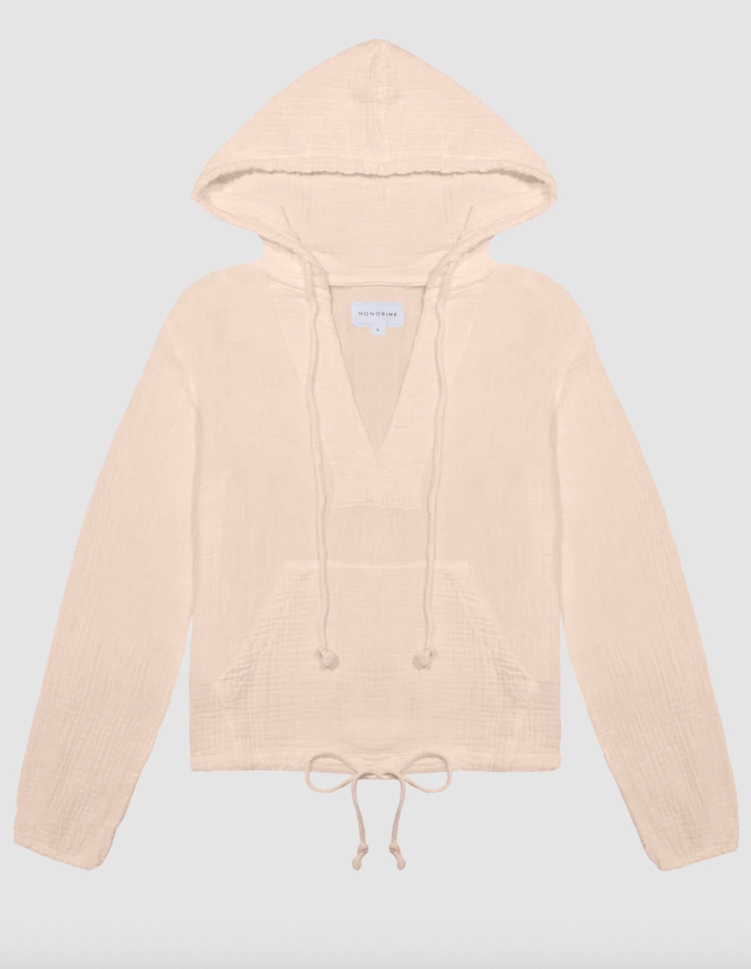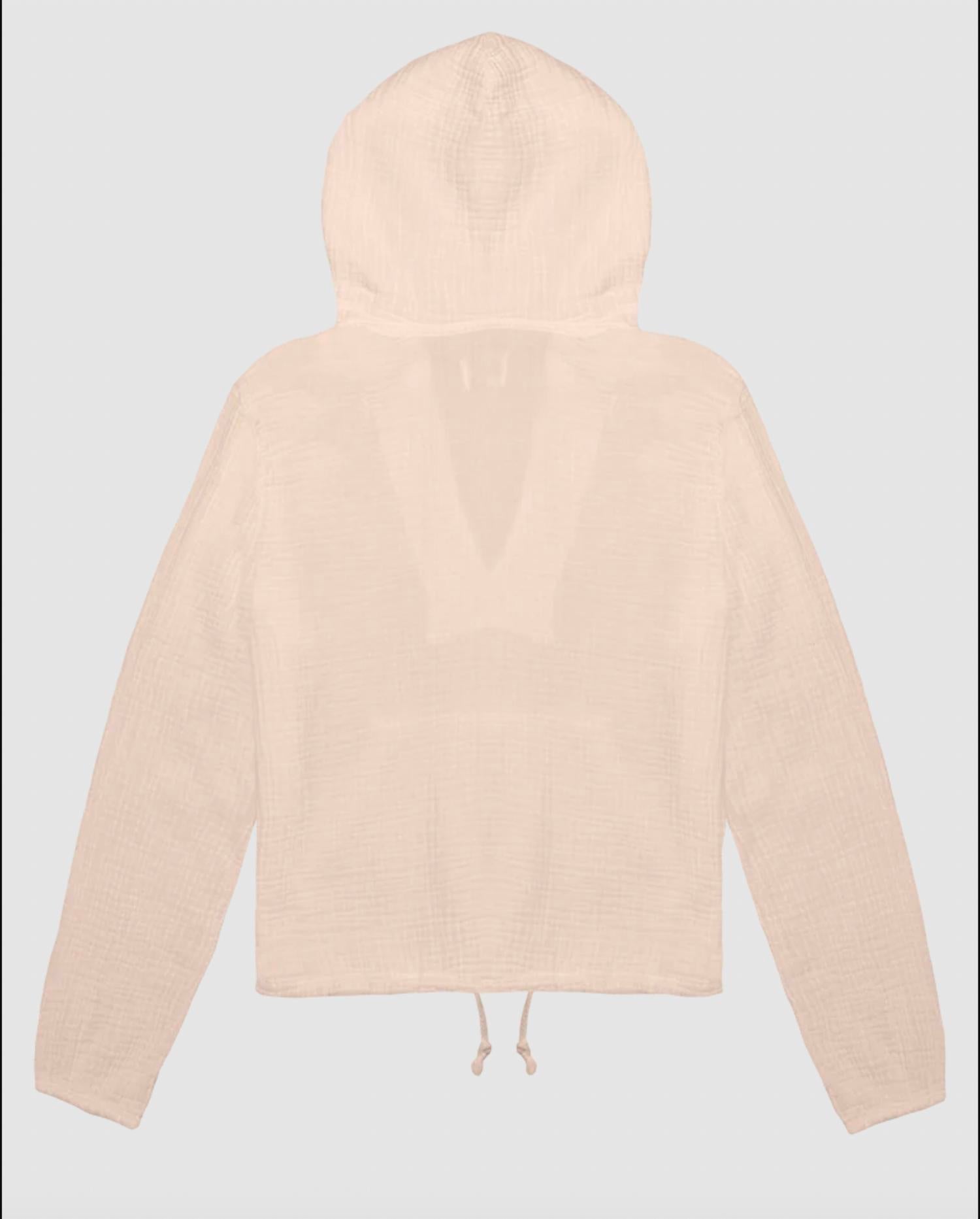 Cozy fabric, impeccable design - Meet the sweatshirt that you'll never want to take off. This modern take on the classic hoodie is crafted from 100% cotton gauze for a lightweight, airy feel. Designed with elasticated cuffs, a practical front pocket, and tonal twisted drawcords at the hem, it offers a relaxed yet subtly shaped fit. Comfortable, effortless, and ideal for warm, laid-back days, it blends ease and style perfectly.