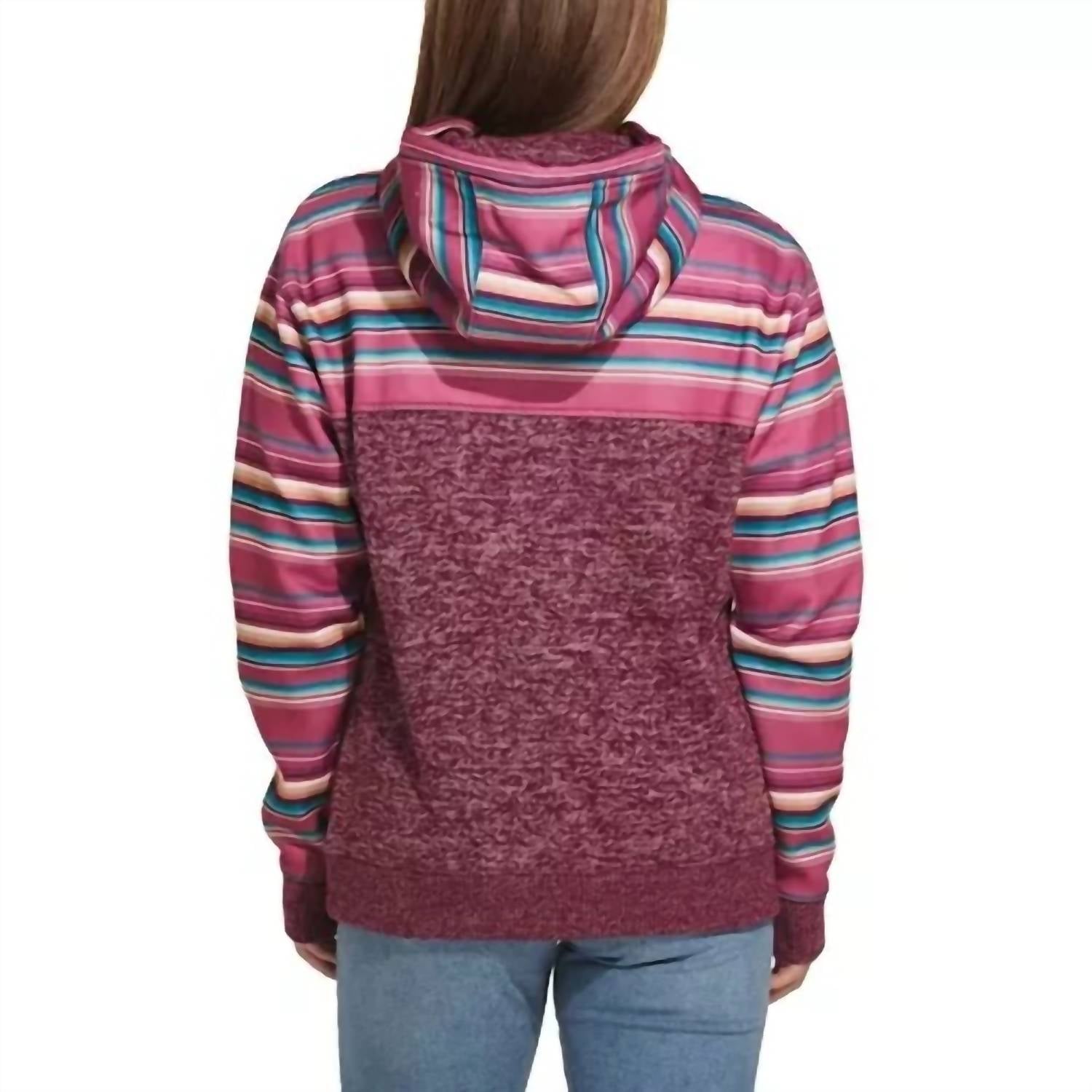 Cozy fabric, impeccable design - Meet the sweatshirt that you'll never want to take off. Embrace the 90s fashion trend with the Jimmy Serape Hoodie by HOOEY, featuring a maroon serape design perfect for a fall vacation. This sweatshirt is crafted from a comfortable cotton blend, offering long sleeves and a hooded neckline to keep you cozy. The stripe pattern and convenient pockets add a touch of functionality and style. Closure is achieved with a button closure, ensuring a snug fit and versatile wear.