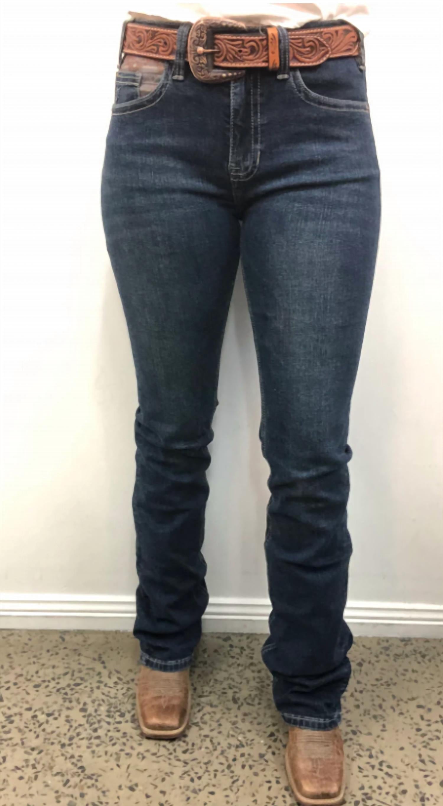 This classic straight leg jean has a perfect fit and goes with just about everything. Introducing the Women's Highrise Straight Leg Jeans by HOOEY, a stylish addition to any vacation wardrobe. These dark blue jeans feature a classic fit with a textured pattern, offering both comfort and a fashion-forward look. Designed with convenient pockets and a secure zip closure, they are perfect for a Western-inspired spring ensemble. Made for women who appreciate both form and function, these jeans are an essential piece for your next getaway.