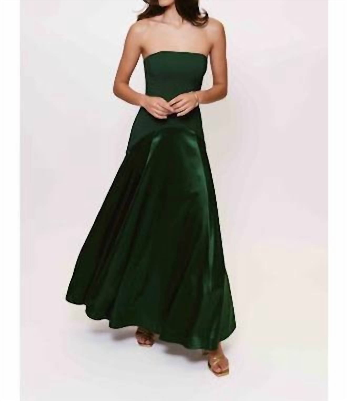 Who doesn't love a good maxi dress? This one you'll be reaching for season after season. Introducing the Francene Maxi Dress by Hutch, a stunning emerald green piece crafted from luxurious velvet. This strapless sheath silhouette is designed for evening events, especially perfect for New Year's Eve. With a minimalist style, it features a secure zip closure, offering a seamless fit. For care, hand wash and lay flat to dry to maintain its elegant appeal.