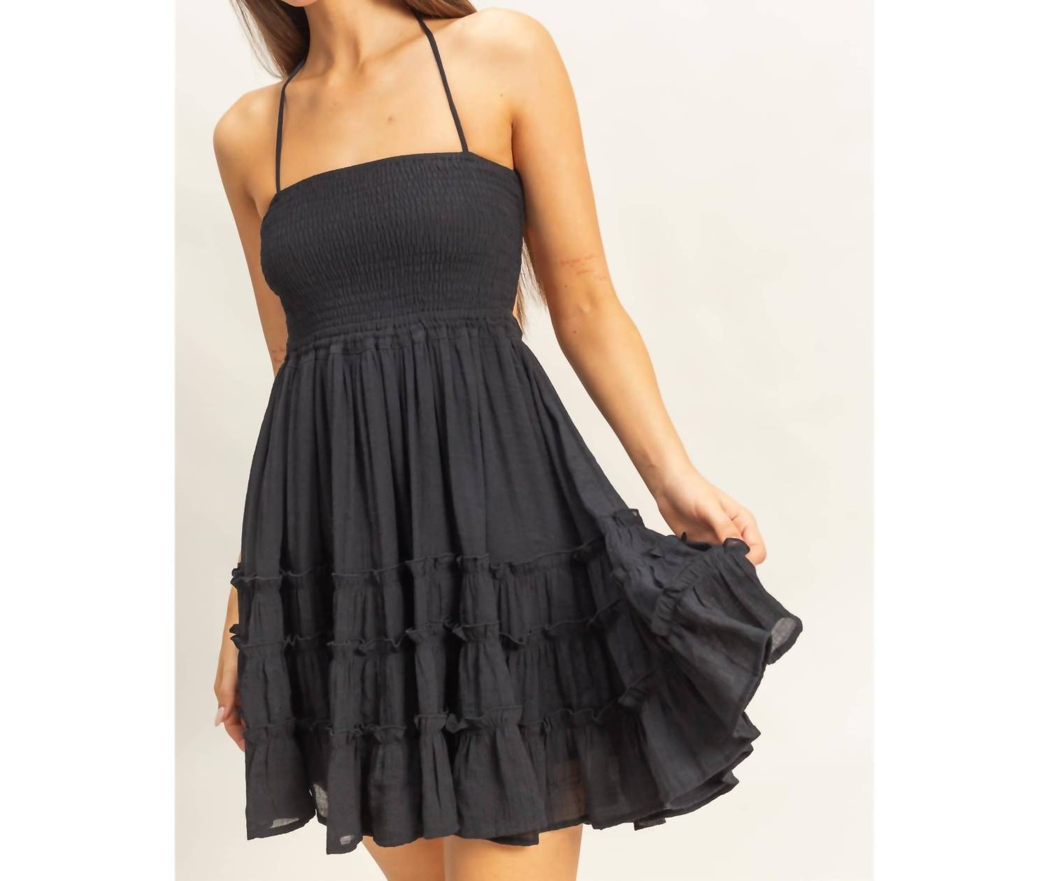 Hyfve - Dakota Smocked Halter Neck Tiered Mini Dress