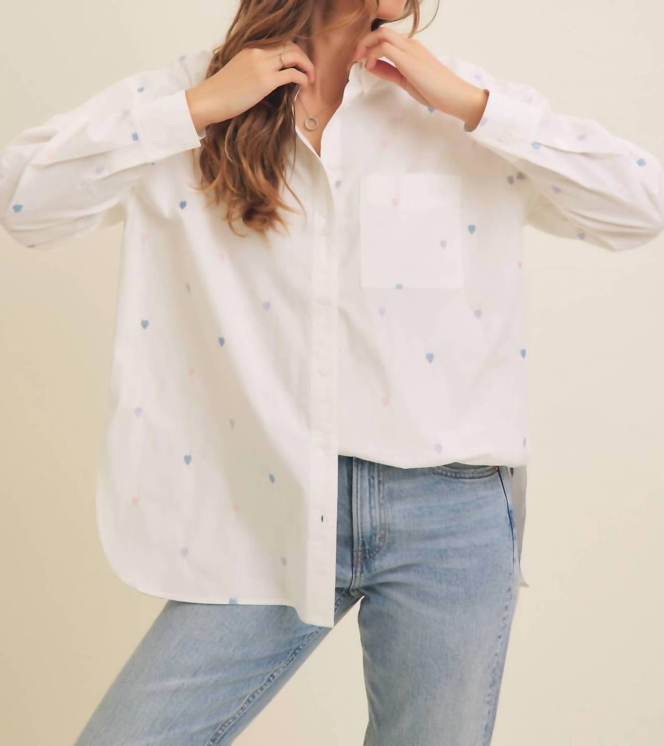 In February - Full Of Hearts Embroidery Button-down Shirt