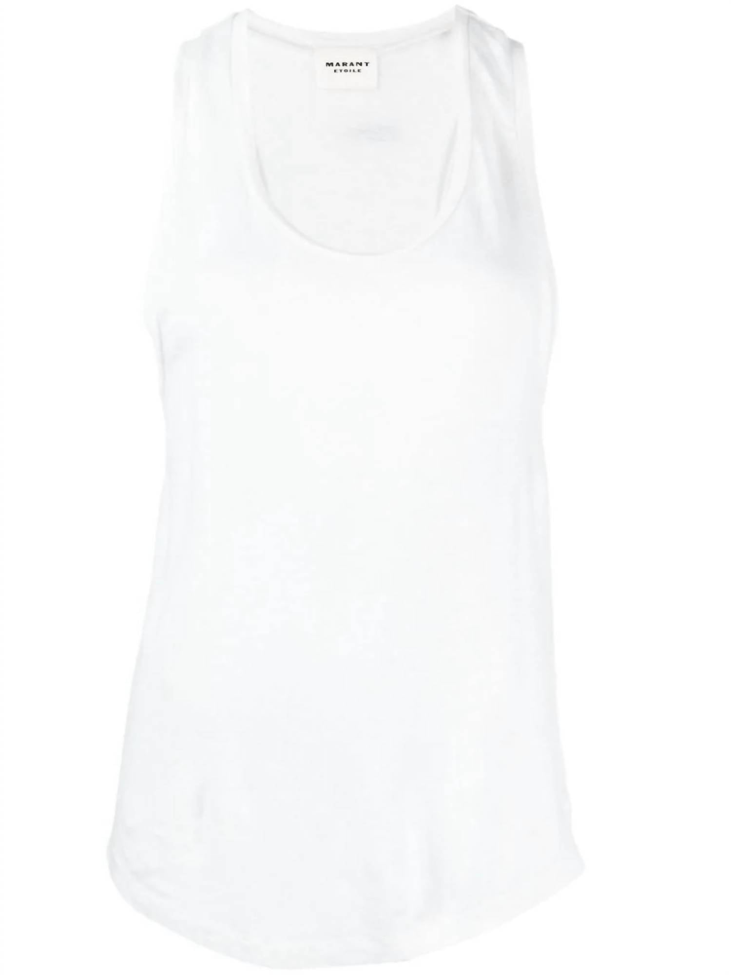 The perfect tank top for those warmer weather seasons. Unveil the effortless charm of the Women's Arielle Top by Isabel Marant, crafted for the modern minimalist. This sleeveless linen t-shirt in pristine white features a flattering scoopneck, making it a summer staple. Enjoy the freedom of a pull-on design created with breathable linen for ultimate comfort. Easy maintenance is assured with machine wash care instructions.