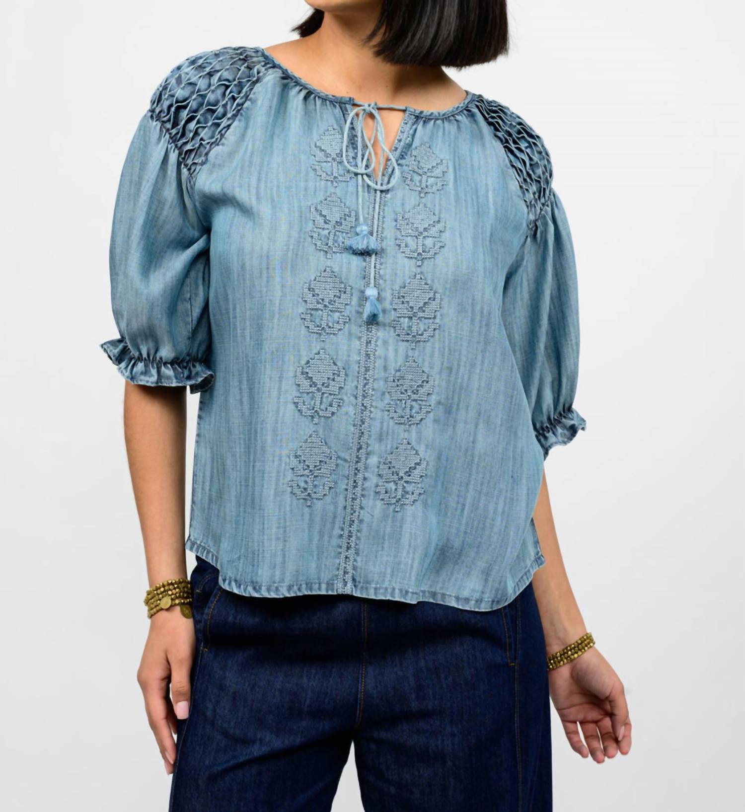 Ivy Jane - Claudia Smocked Sleeve Denim Top