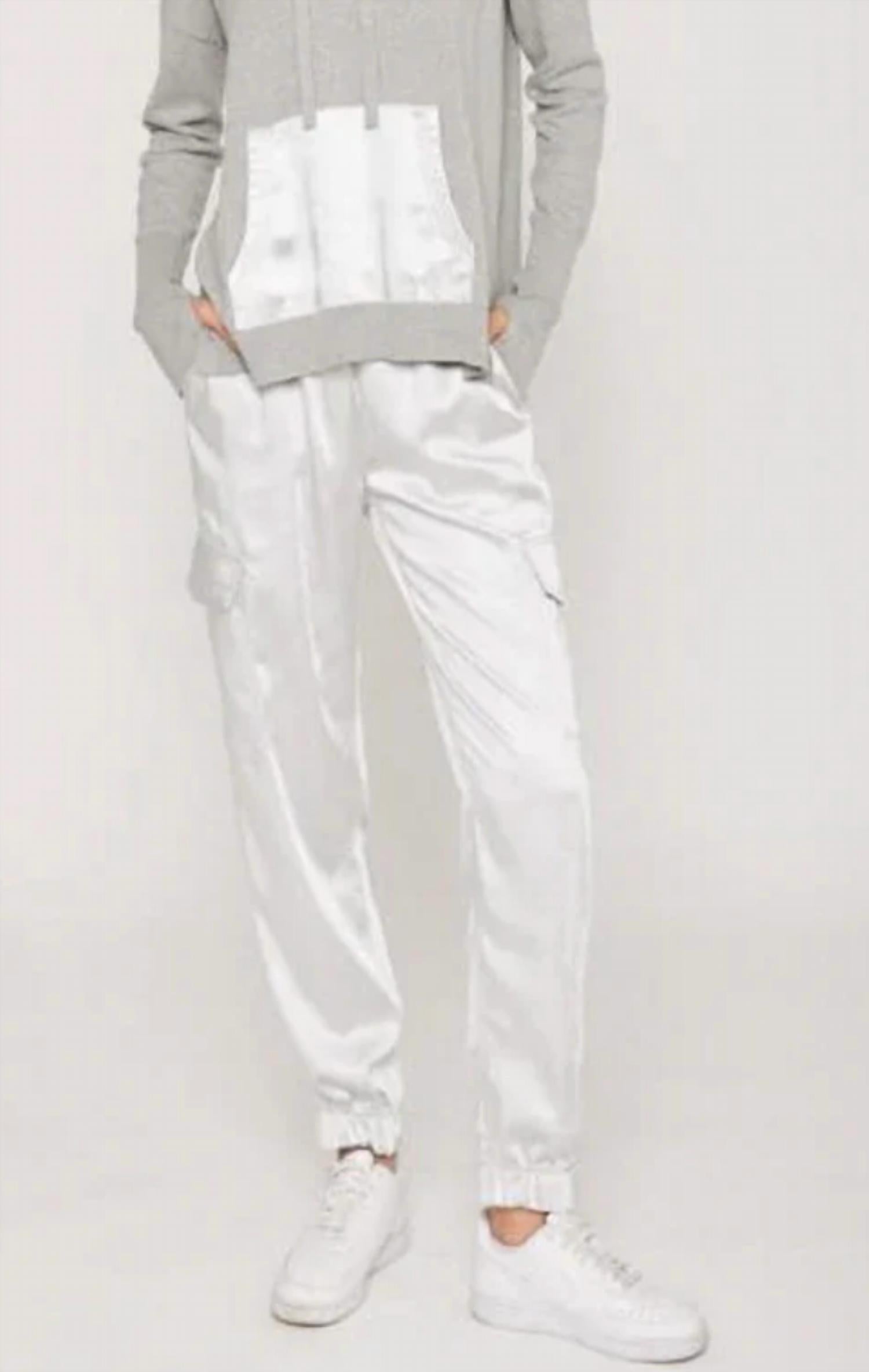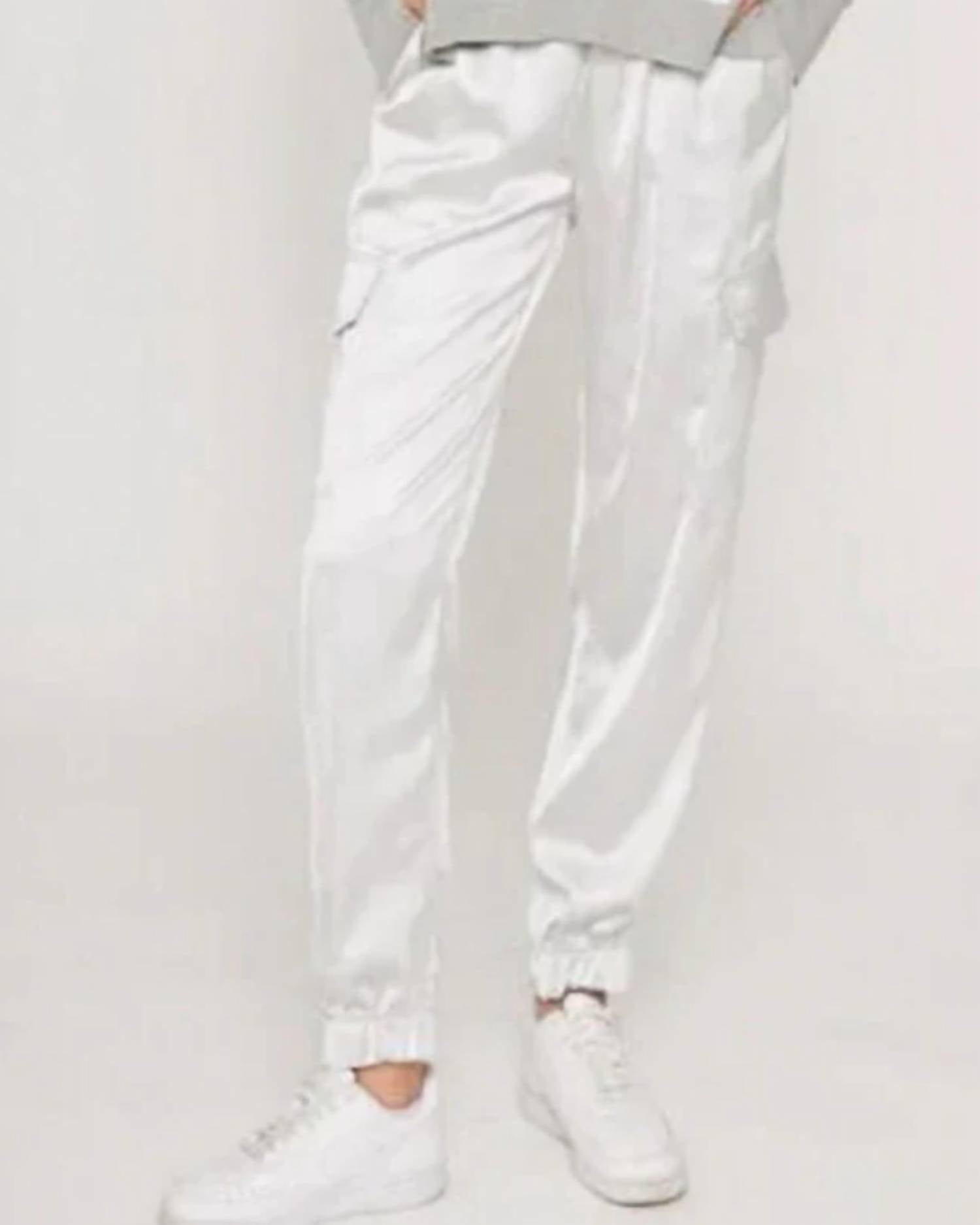 The perfect pant for running around town and looking cool while doing it. Elevate your summer vacation look with the Platinum Cargo Jogger by J. Society, a perfect blend of comfort and style. Designed for women, these high-rise joggers feature a sleek, slim fit with a tapered leg and pull-on closure for easy wear. Crafted in a minimalist solid white pattern, the jogger includes practical pockets, making it both fashionable and functional. Care is effortless with machine wash and line dry instructions.