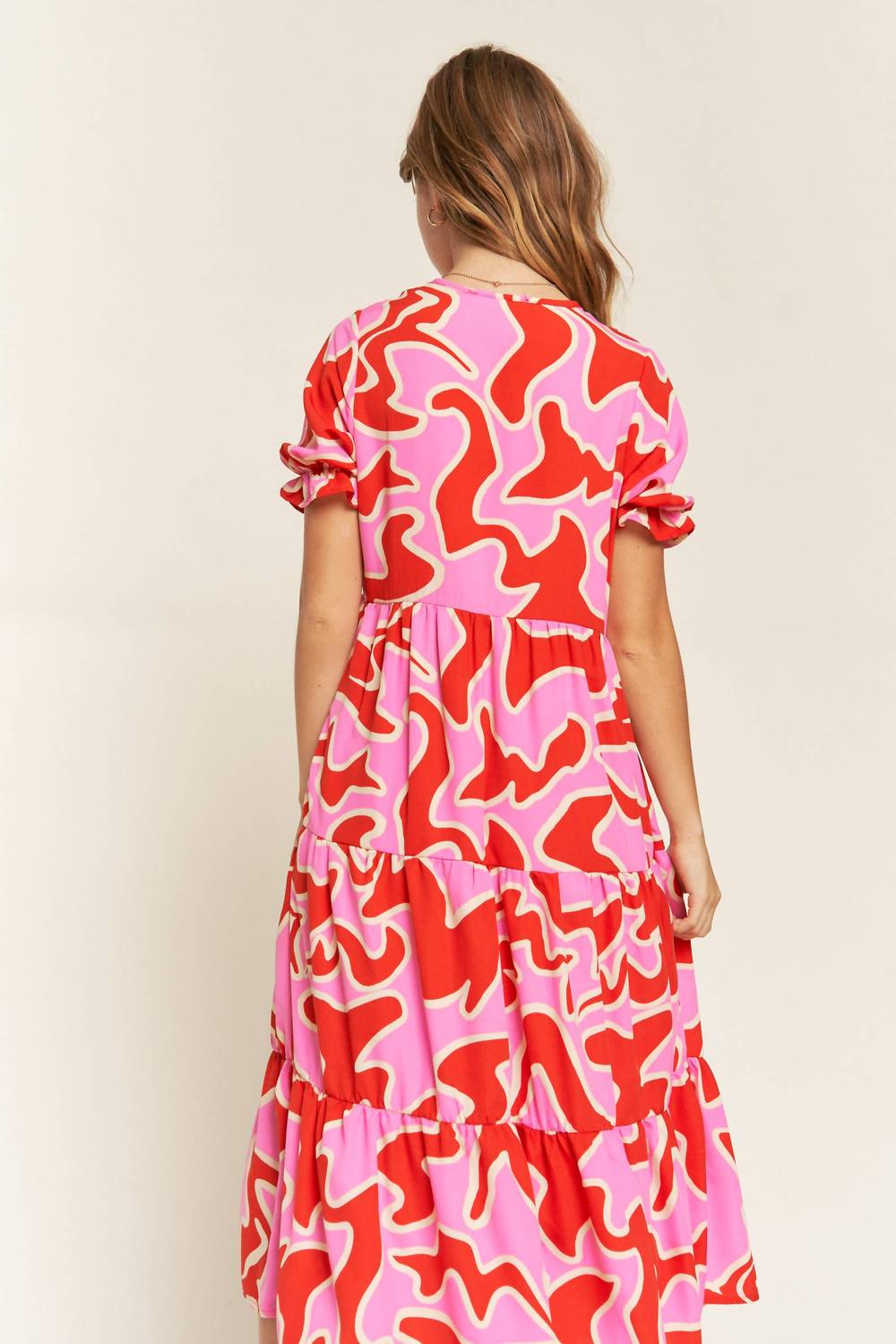 Jade By Jane - Beautiful Chaos Tiered Short Sleeve A-line Midi Dress