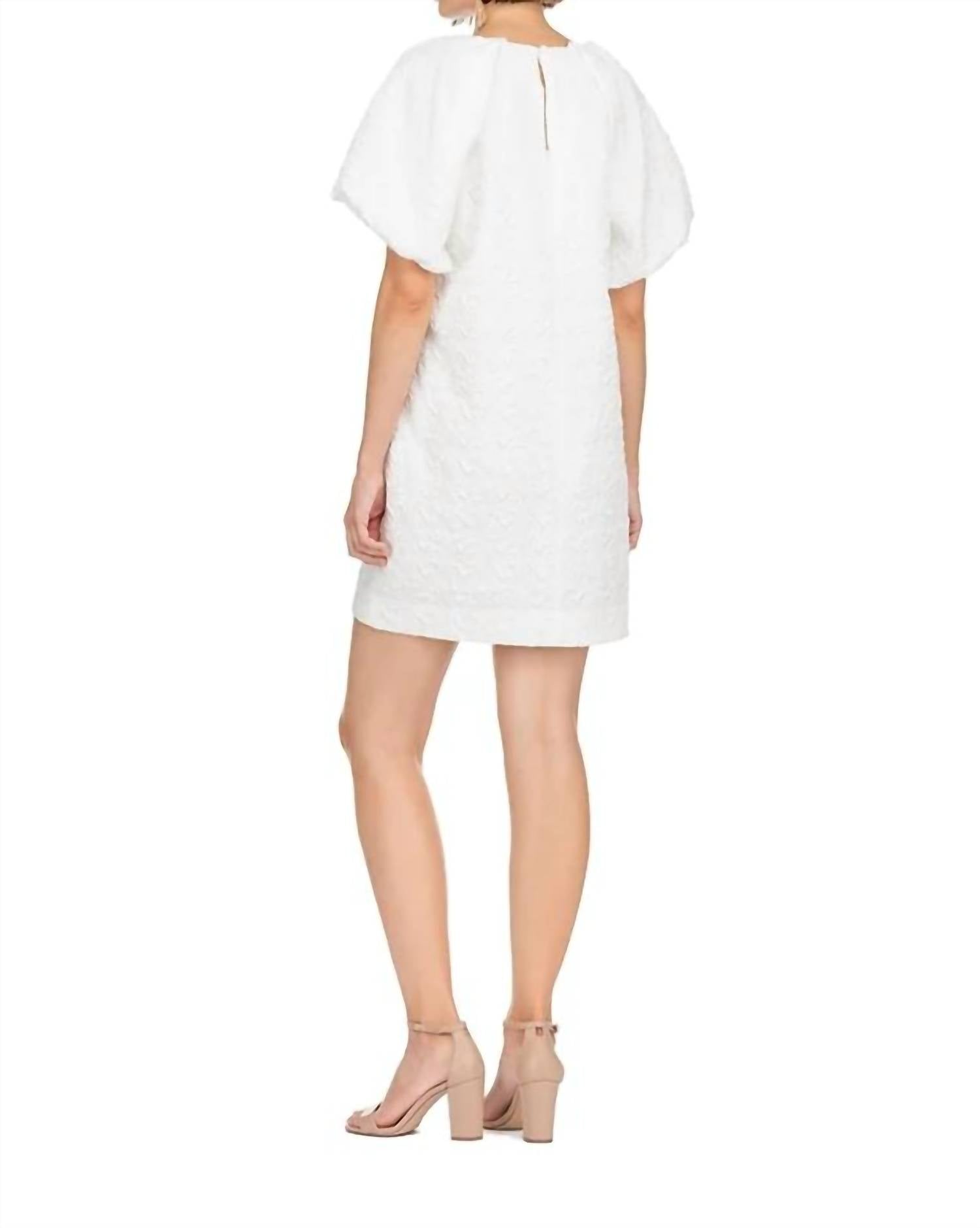 The kind of easy and flattering dress you'll be reaching for all season long. Introducing the Bro Puff Sleeve Chemise by Jade Melody Tam, a chic mini dress perfect for your next holiday party. This solid white shift dress features a flattering V-neckline and short puff sleeves for a touch of elegance. The button closure adds a classic finish to this piece, designed with no pockets for a streamlined look. Ideal for Easter celebrations, this dress brings effortless style to your summer wardrobe.
