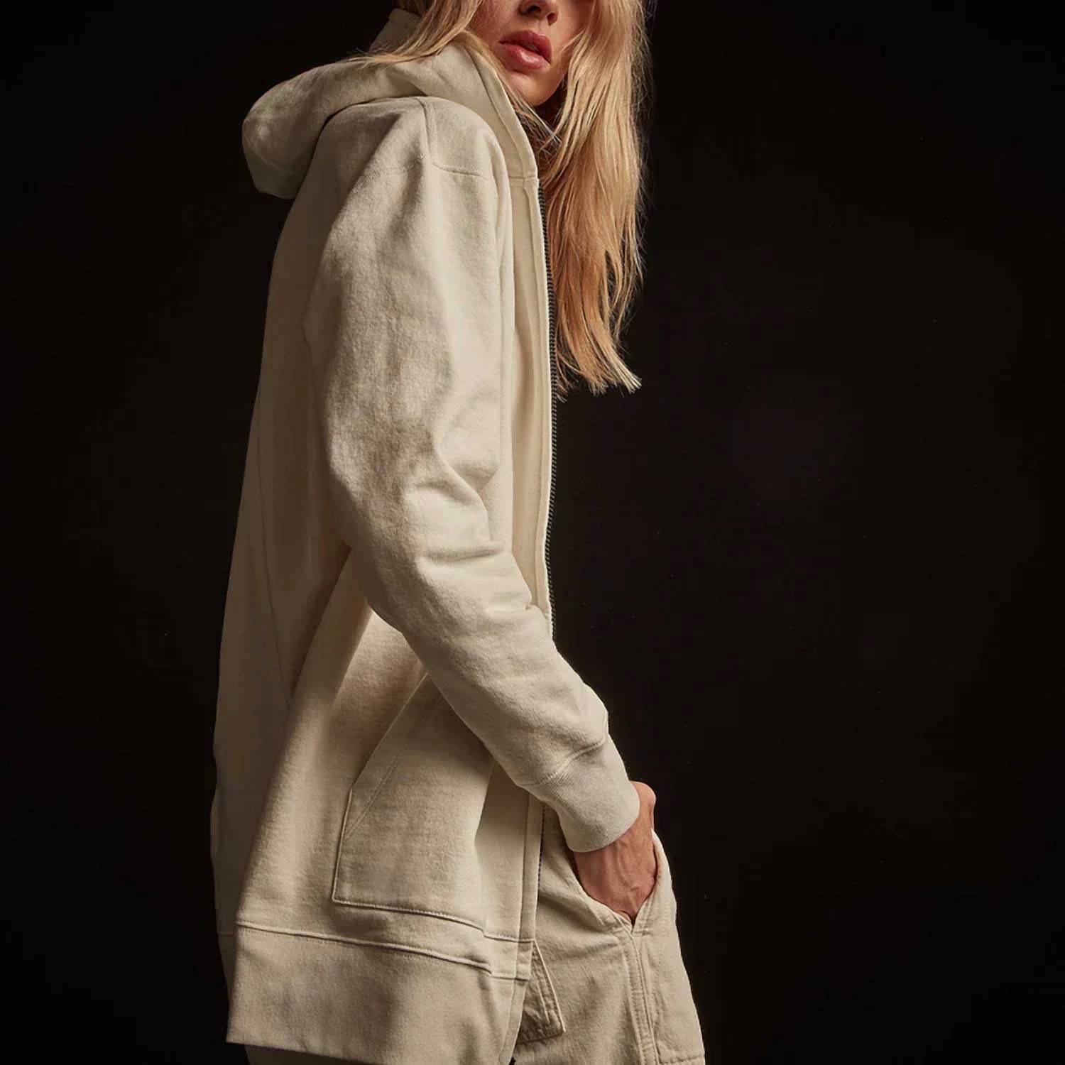 Cooler temps call for layering and we love this adorable sweatshirt for all the obvious reasons. oversized french terry zip hoodie