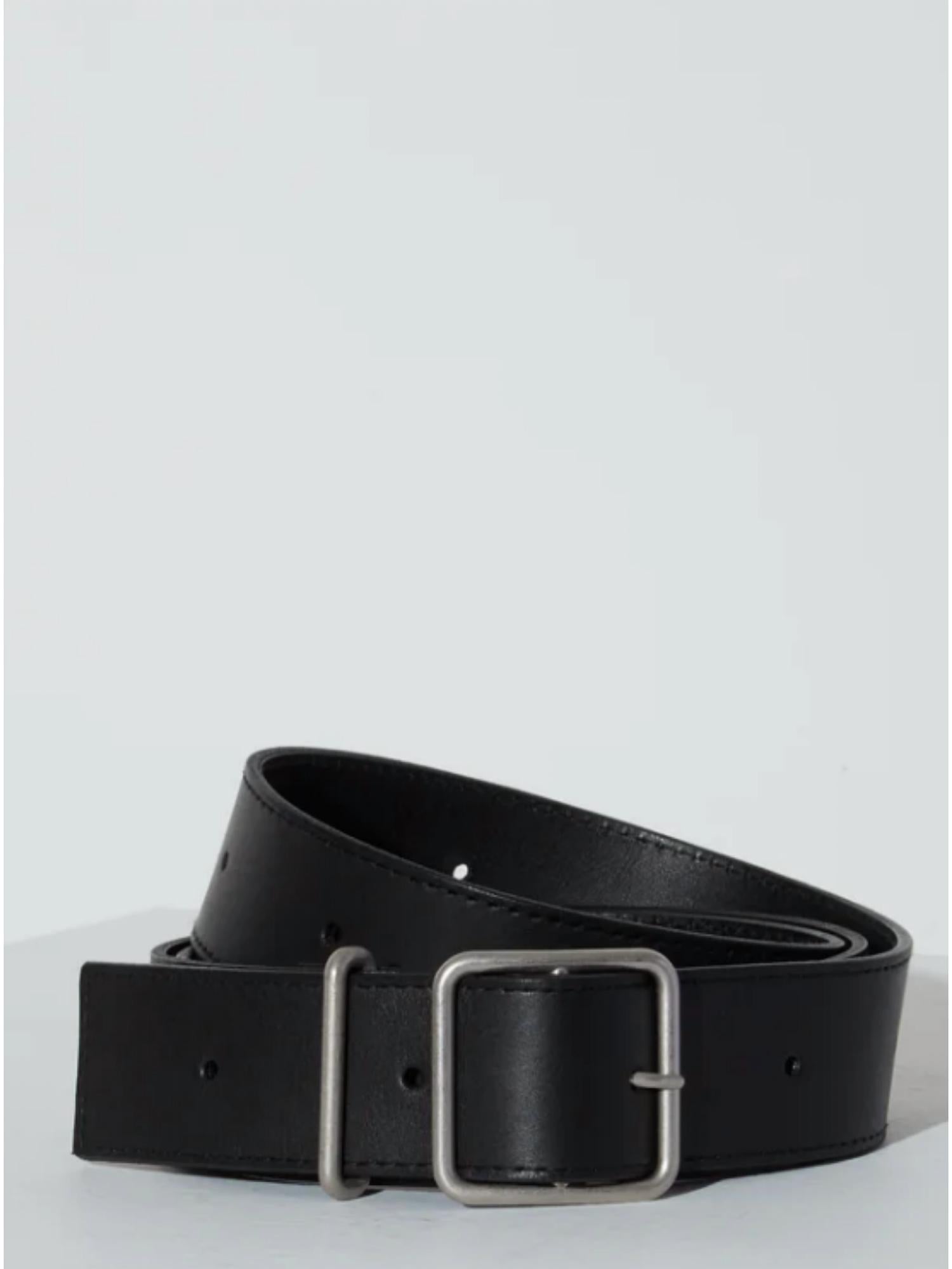 Upgrade your accessory game with this stylish and versatile belt that will tie any outfit together. This must-have accessory is classic in its design and will never go out of style. The Women's Bode Belt by Janessa Leone is an exquisite accessory crafted from 100% black regenerative leather, offering both sustainability and sophistication. It features a brushed matte alloy buckle for a sleek finish. This belt is designed to be adjustable, accommodating waist sizes from 27" to 35".