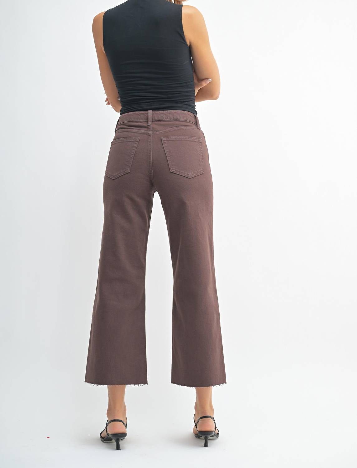 Pair these wide leg jeans with mules, slides or your favorite strappy sandals. These slim wide-leg jeans offer the perfect balance of structure and ease, with a fitted shape through the hips and thighs that opens into a relaxed, wide-leg silhouette. Designed with a high rise, classic zipper closure, and functional pockets, they create a leg-lengthening effect while maintaining everyday comfort. The cropped inseam gives a modern, laid-back feel, and the raw hem adds an effortlessly cool finish.