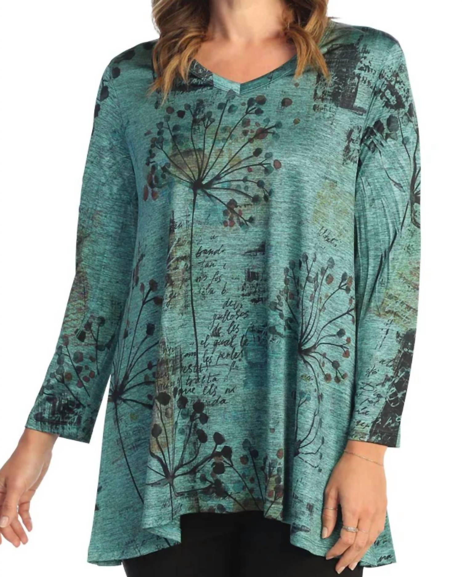 A timeless blouse that will never go out of style. Elevate your wardrobe with the Sienna Slinky High Low Top by Jess & Jane, a stunning piece in vivid green. This versatile blouse features three-quarter sleeves, a V-neckline, and a chic high-low hemline, crafted from a soft, silky, and stretchy slinky knit. Composition: 95% Polyester, 5% Spandex. Made in the USA, it’s designed for easy care with a pull-on style and machine wash instructions. Perfect for any occasion, this relaxed, A-line silhouette embodies modern Boho Chic.