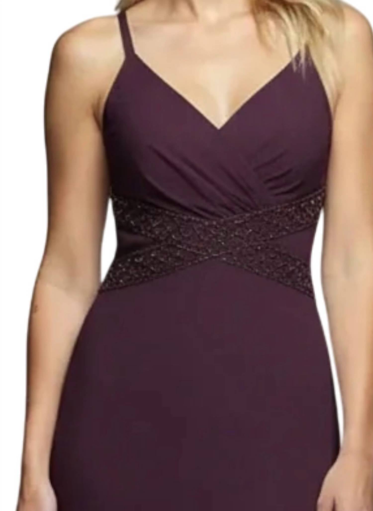 The perfect mini dress for those warmer months. Embrace elegance with the Sequence Waist Cocktail Dress by Jessica Howard, perfect for a summer cocktail party or New Year's Eve celebration. Crafted from a blend of 95% polyester and 5% spandex, this purple mini dress boasts a sheath silhouette with spaghetti straps and a V-neckline. The dress is lined and offers a chic, solid pattern, ensuring a seamless pull-on style for easy wear. Care for this quiet luxury piece by dry cleaning only.