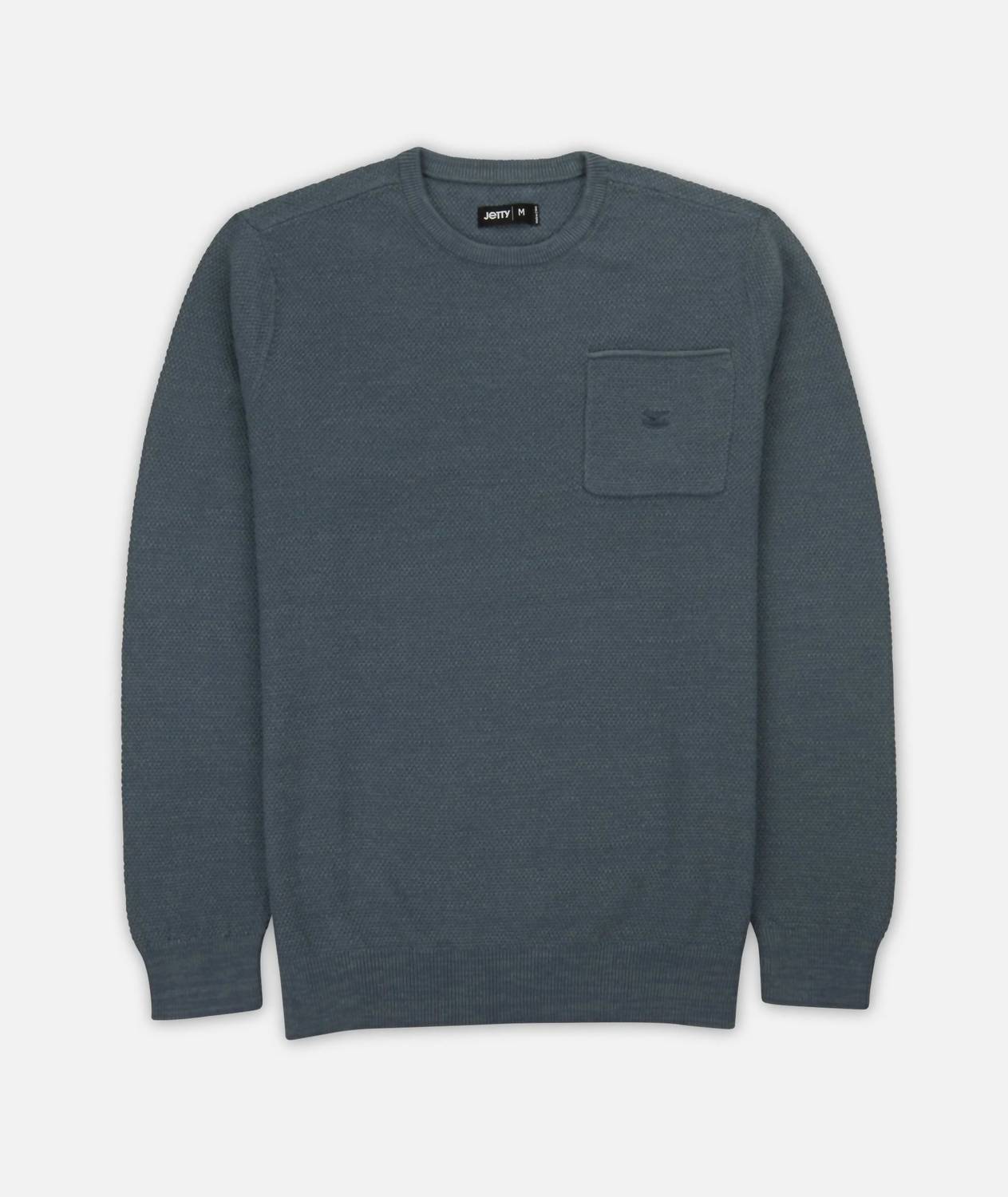 Stay warm and stylish in this versatile and effortlessly cool knitwear staple. Wear it alone or layered, it's the perfect sweater for the season and you'll wish you had it in every color. Elevate your fall wardrobe with the Jetty Women's Brine Sweater in Storm, a perfect vacation-ready piece for the minimalist trend. This textured, long-sleeve sweater is crafted from 100% cotton, featuring unique colorways with marled yarn and a crewneck design. The rolled edge chest pocket adds functionality, while the tonal embroidery logo and light ribbing at the waist and cuff enhance its stylish details.