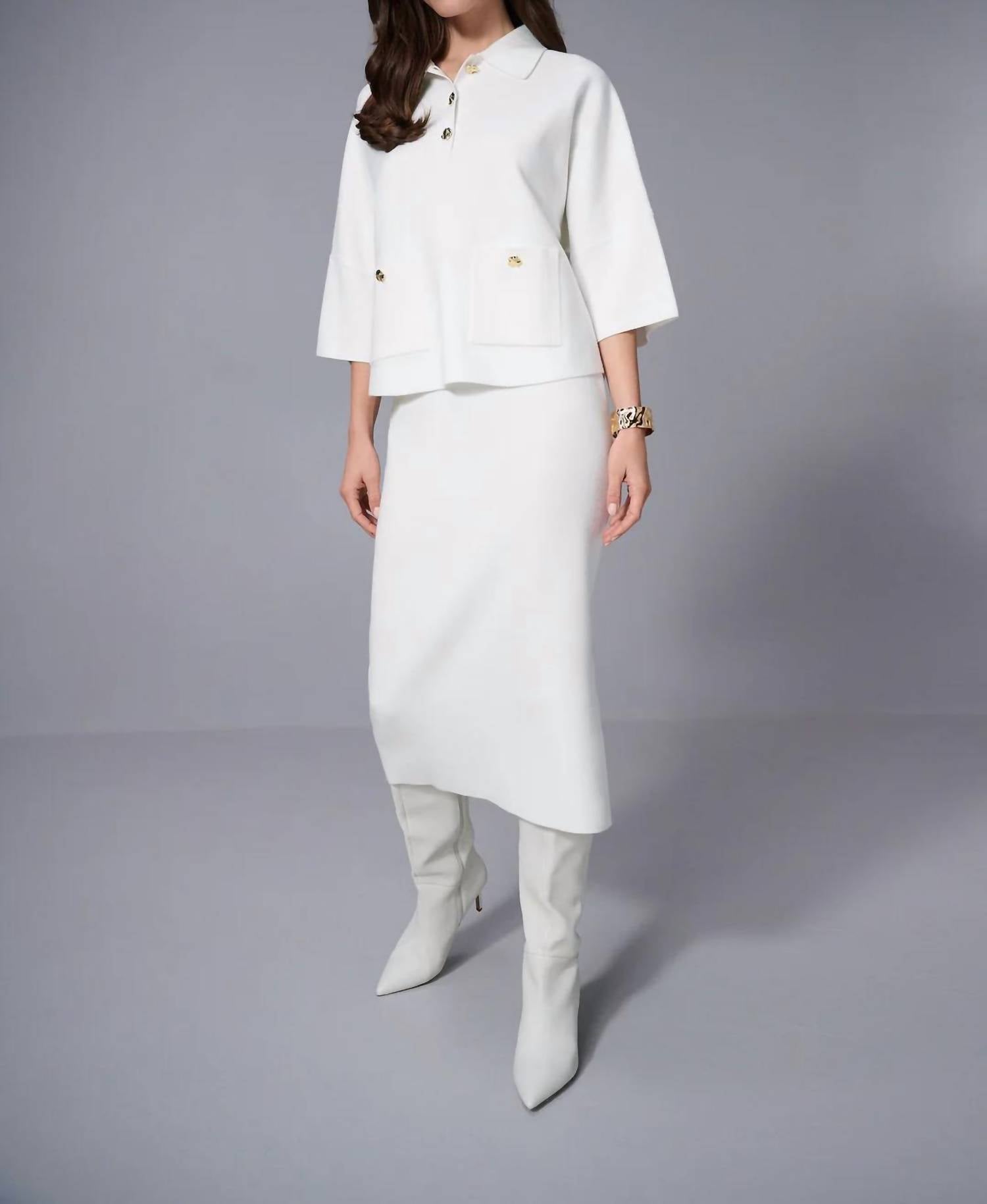 This classic, short sleeve tee will be your go-to staple this season and beyond. Elevate your style with the Joseph Ribkoff Collared 3/4 Sleeve Boxy Top in Winter White, designed for an elegant yet modern look. This women's top features a sophisticated collar and three-quarter sleeves, making it perfect for preppy engagements or simply to add a refined touch to your outfit. Crafted from a luxurious viscose blend, it boasts a solid pattern and a button closure for a polished finish. Care for this imported piece is easy with hand wash instructions and line dry recommended to maintain its impeccable look.
