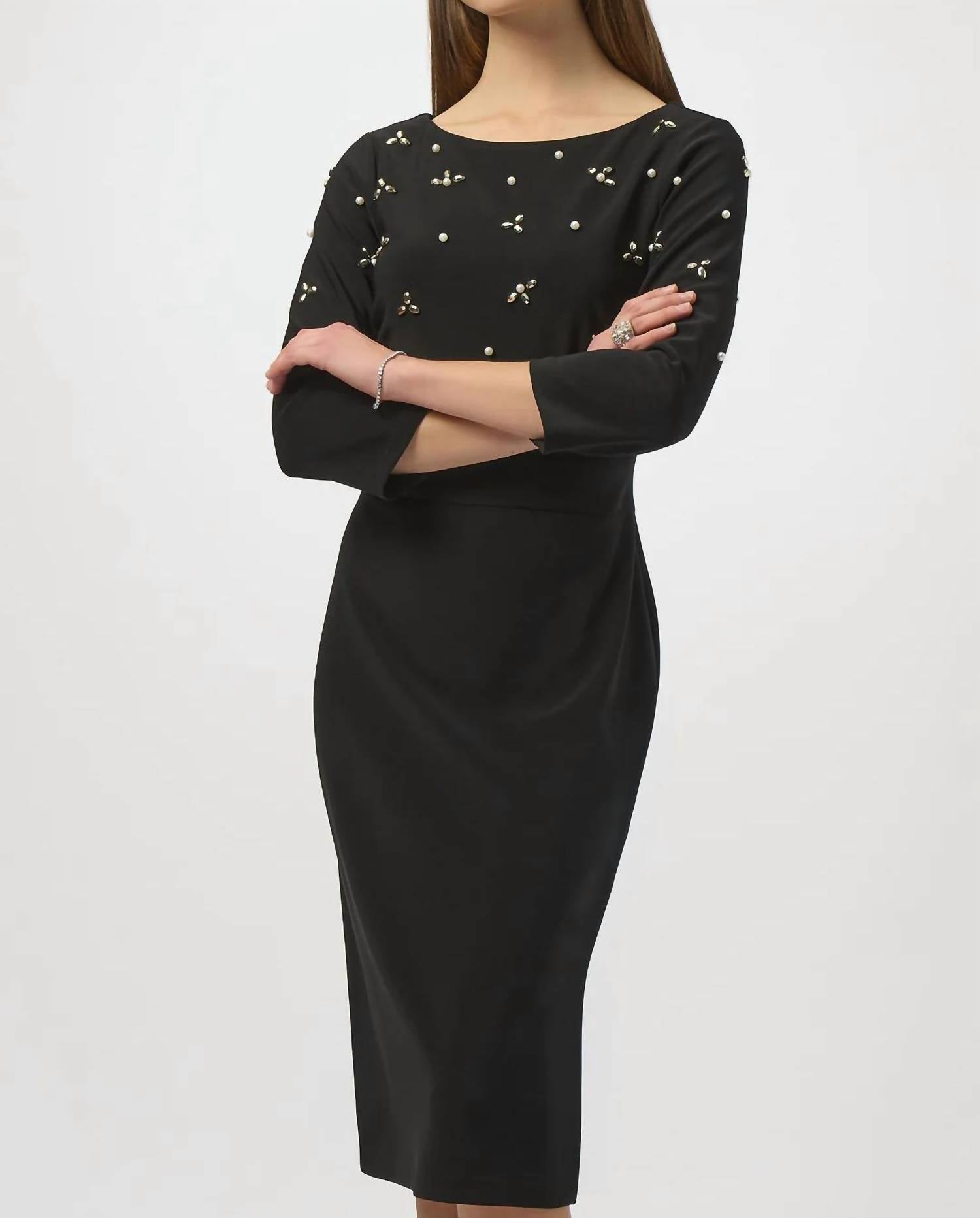 Joseph Ribkoff - Embellished 3/4 Sleeves Midi Dress