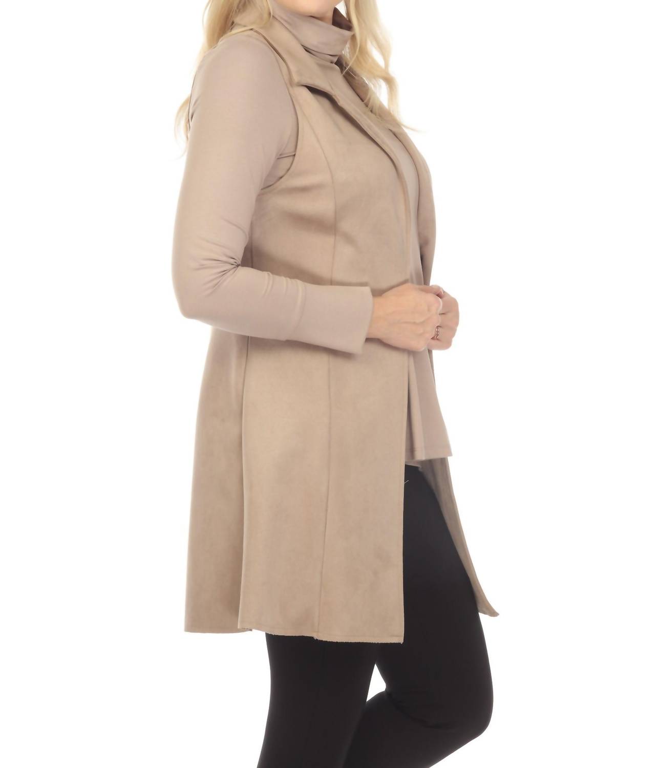 Joseph Ribkoff - Faux Suede Open Front Longline Vest