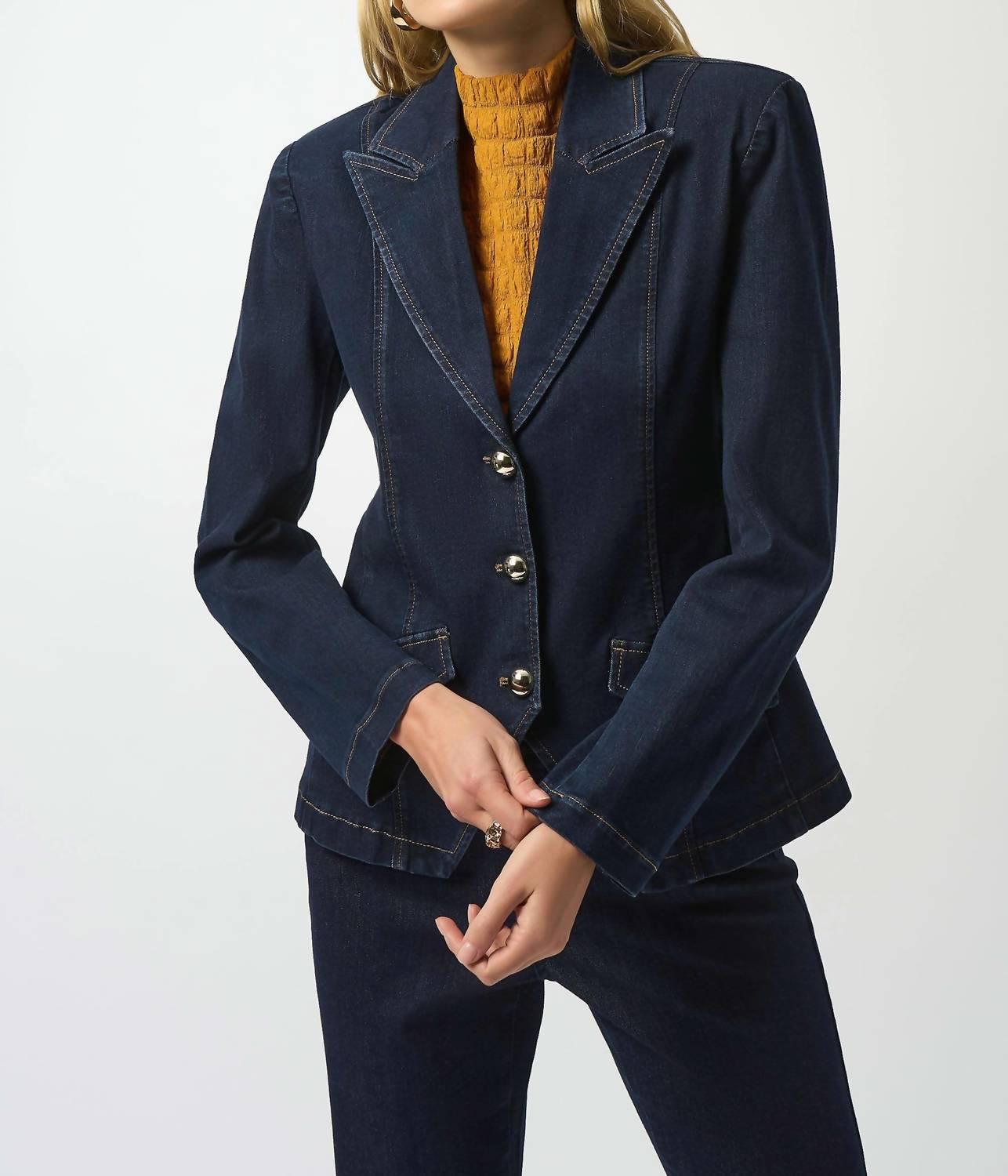 Joseph Ribkoff - Stretch Denim Fitted With Buttons Blazer