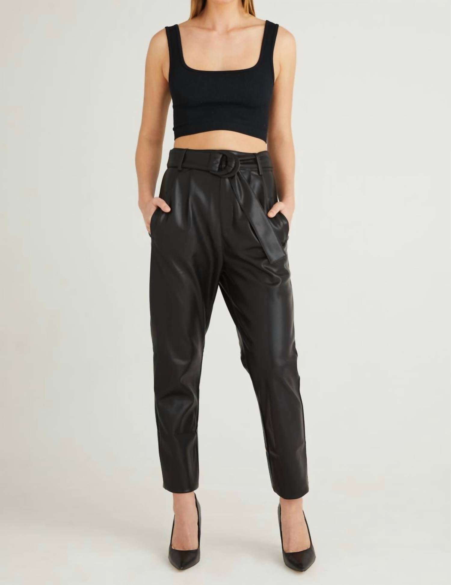A perfectly tailored straight leg that you'll want in every color! Elevate your spring wardrobe with the Women's Munich Pants by JS71, designed for a chic vacation style. These black straight-leg pants are crafted from a durable blend of 50% PU and 50% polyester, offering a classic fit that includes a pleated front. Featuring front and back pockets and a removable belt, these pants are imported and close with a zip closure. Care instructions: dry clean only.