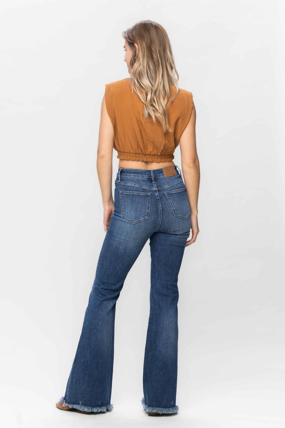 Just add boots! Discover the Judy Blue High Waist Tummy Control Fray Hem Jeans, crafted for those who embrace both style and comfort. These boot-cut jeans feature a flared leg with a high-rise waist and tummy control for a flattering fit. Made from a durable cotton blend of 91% Cotton, 7% Polyester, and 2% Spandex, they come with a practical zip closure and stylish fray hem. With a front rise of 11 inches and an inseam of 33.5 inches, they offer the perfect fit for casual streetwear outfits. Care: Machine wash and tumble dry.