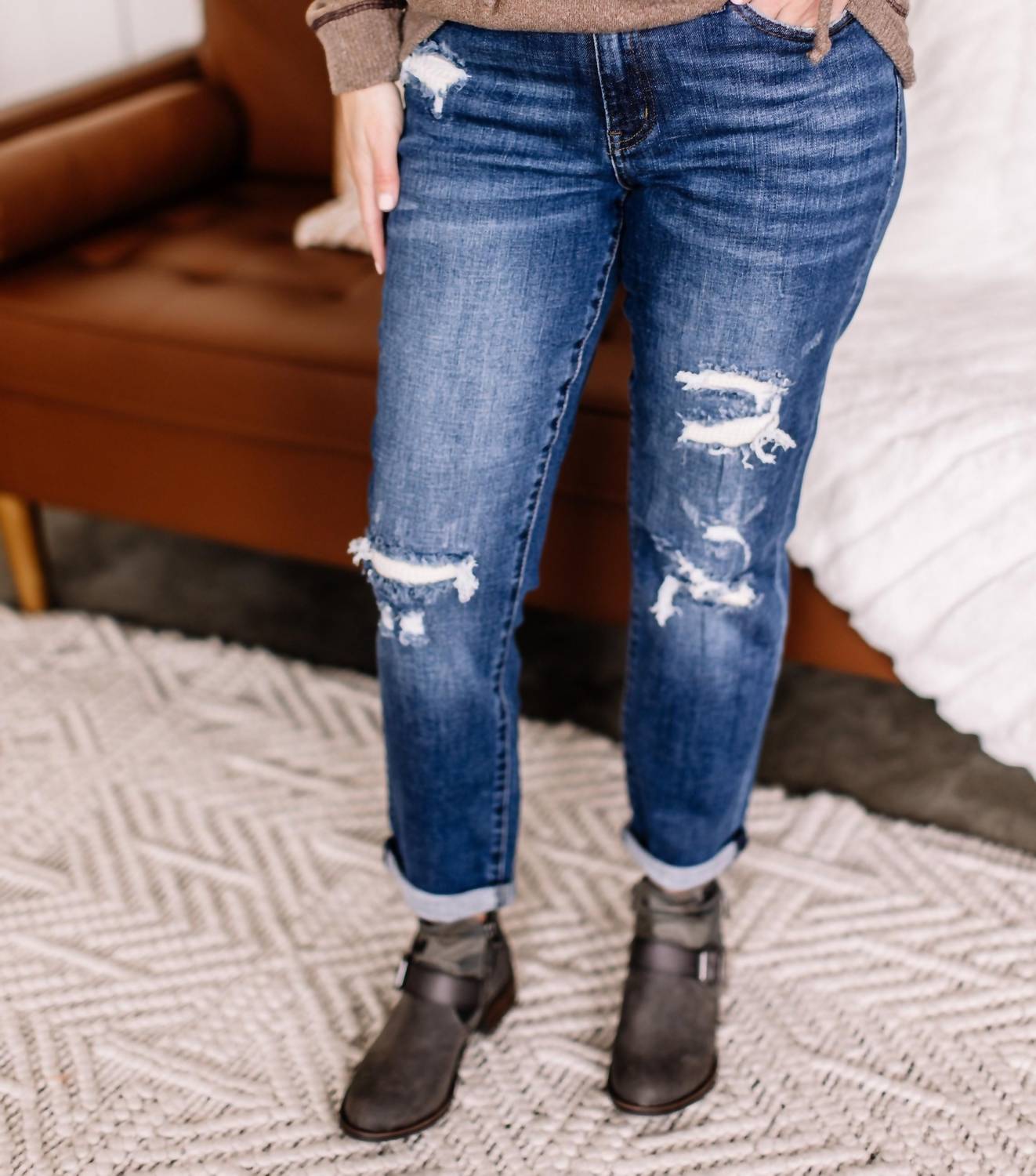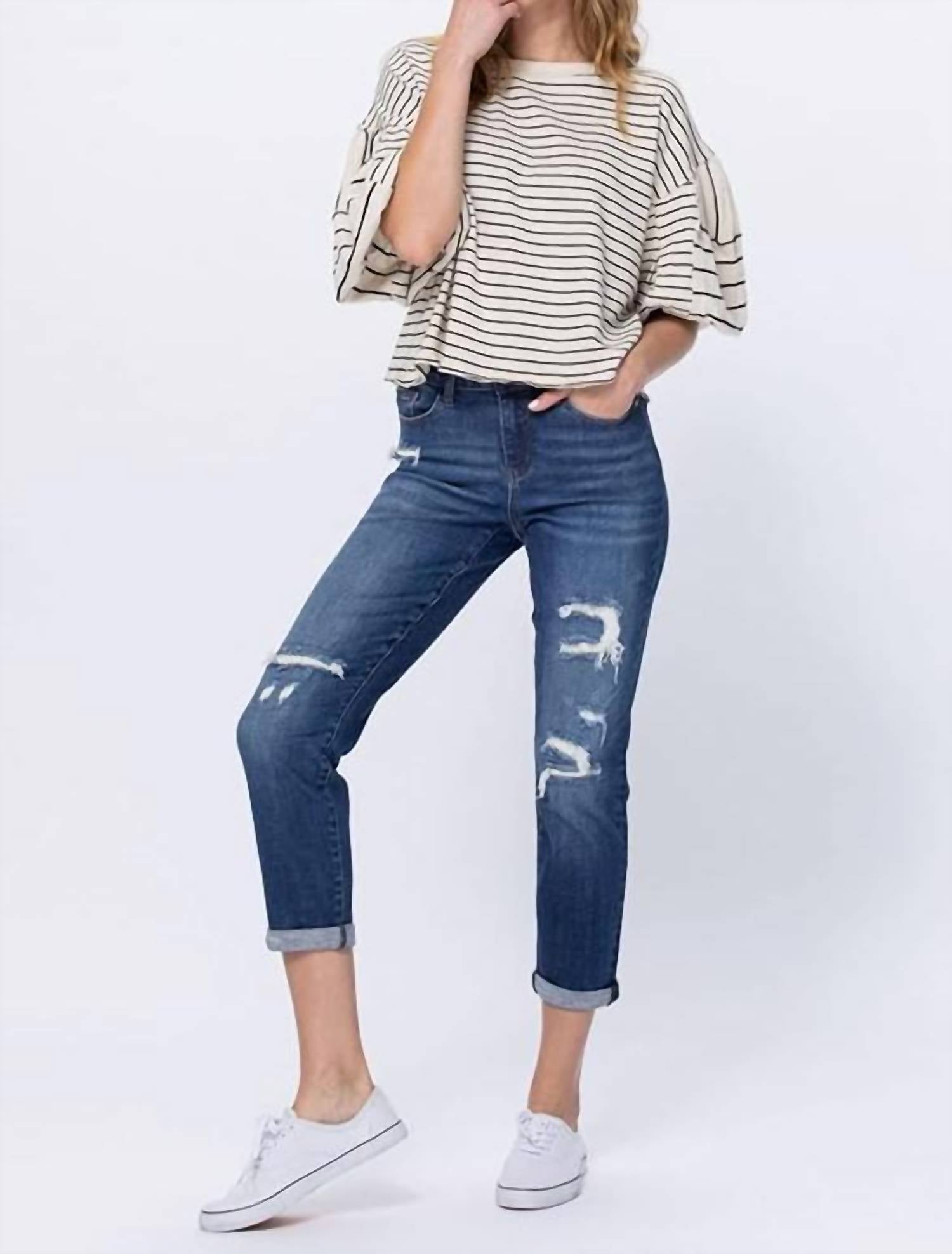 Judy Blue - Some Like It Hot Thermal Patch Boyfriend Jeans
