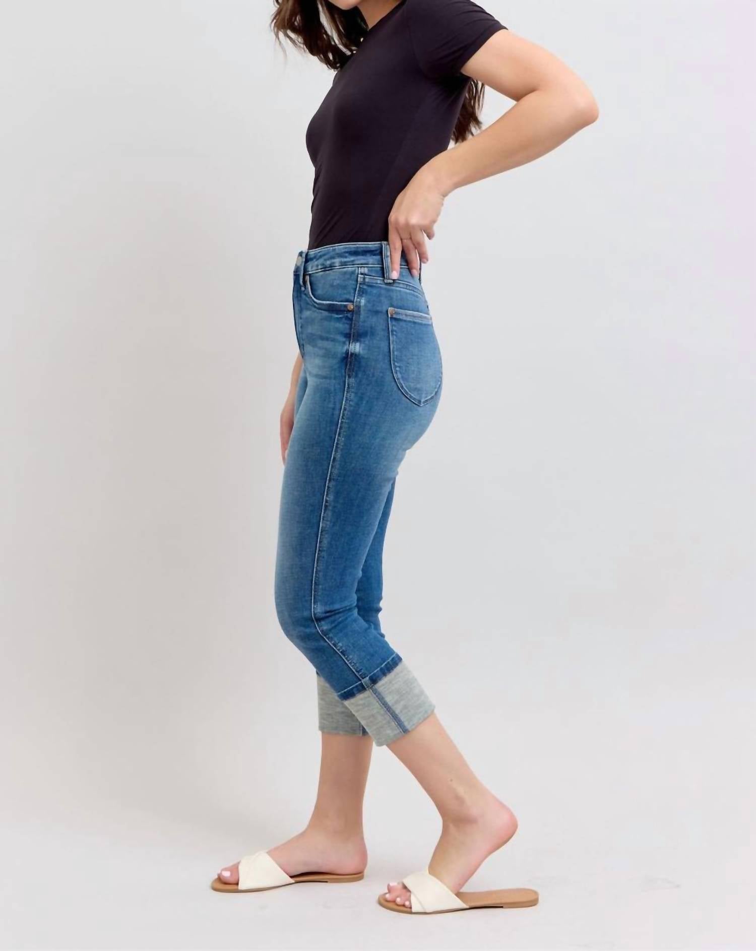 Judy Blue - Tummy Control Back Shield Pockets & Cuff Capri Denim Jeans