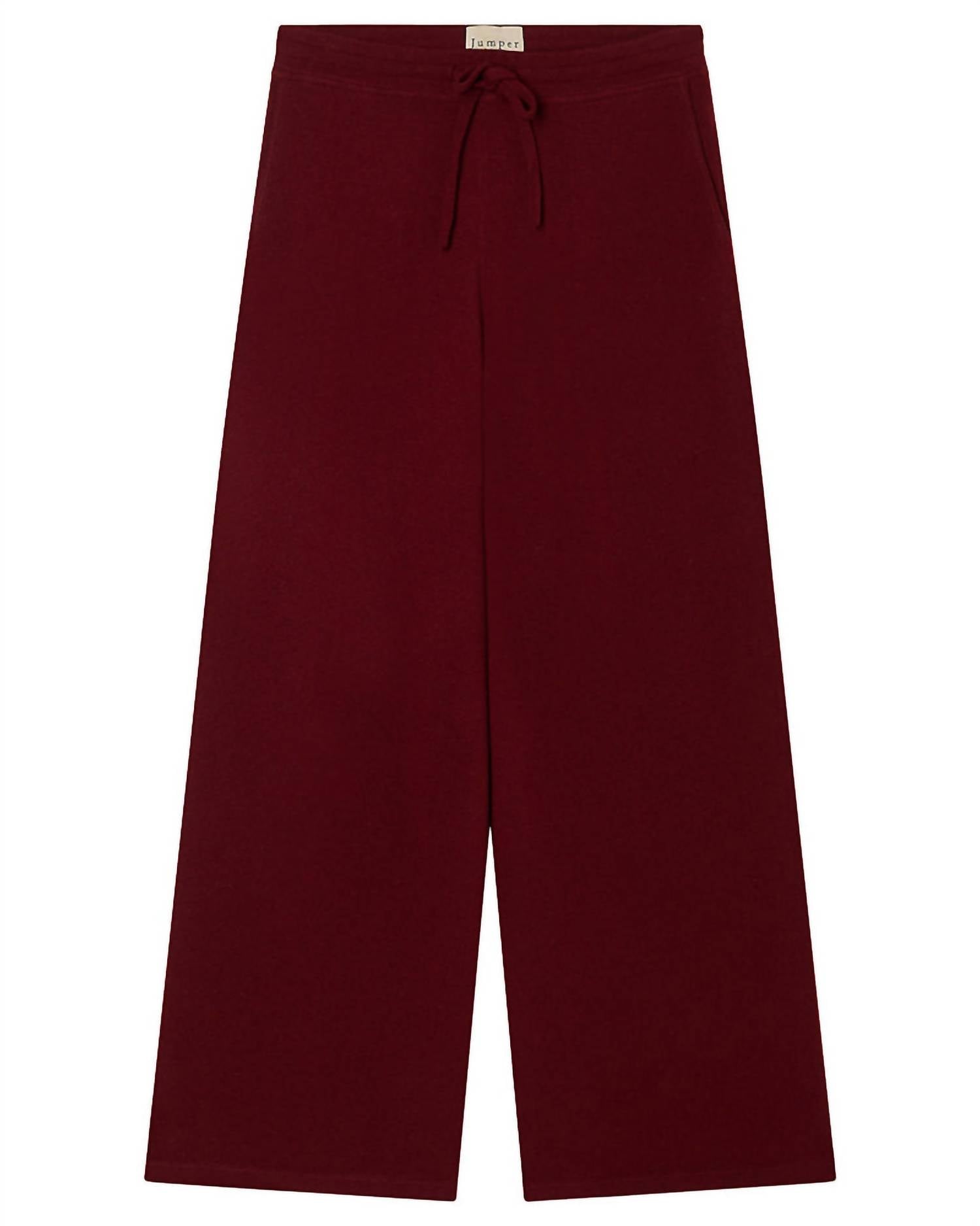The perfect pant for running around town and looking cool while doing it. Elevate your casual wardrobe with the Women's Wide Leg Joggers by Jumper1234, crafted from 100% merino wool for unmatched comfort. These burgundy joggers feature a high-rise waist with a tie closure, offering a trendy comfort fit and stylish wide-leg silhouette. Made in China, this piece is perfect for spring vacations and adds a touch of preppy charm to your outfit. Care for your joggers with a hand wash using non-bio detergent, reshape and dry flat, and apply a cool iron if necessary for maintaining its elegant look. Model is 5ft 9 and a UK size 8, wearing a Jumper1234 size 2.