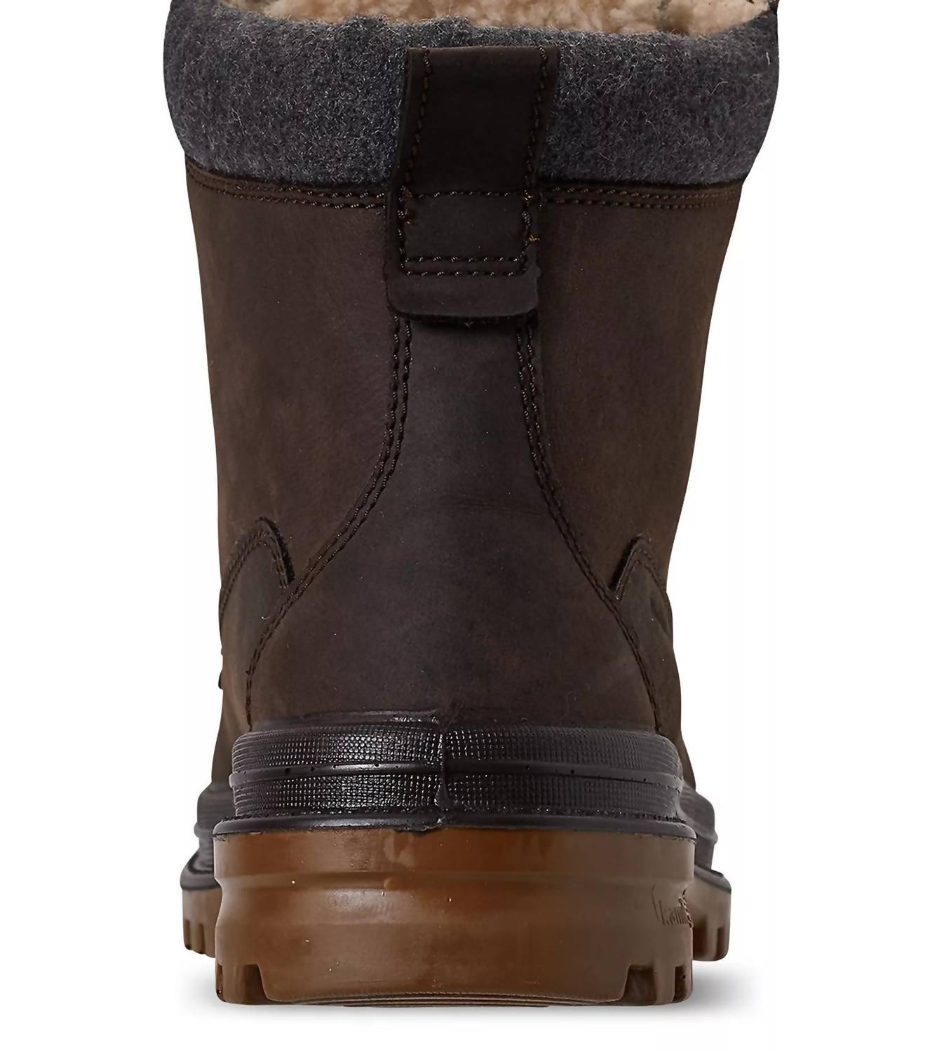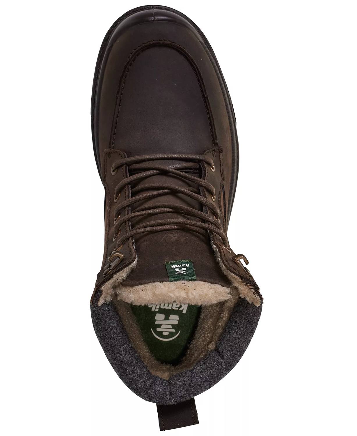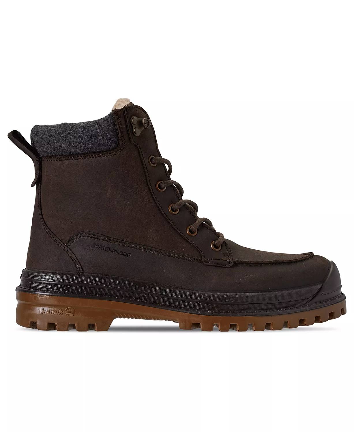 Embrace the cold months with the Kamik Men's Griffon 2 Winter Boots, crafted for both style and functionality. These dark brown boots feature a durable leather upper and seam-sealed construction for a waterproof finish, keeping wetness at bay. Enhanced with Thinsulate insulation and faux shearling lining, they ensure warmth and a hint of style, while the EVA insole combats odors. Complete with a GENESIS non-marking synthetic rubber outsole and a round toe design, these boots offer a low block heel perfect for winter streetwear and travel adventures.