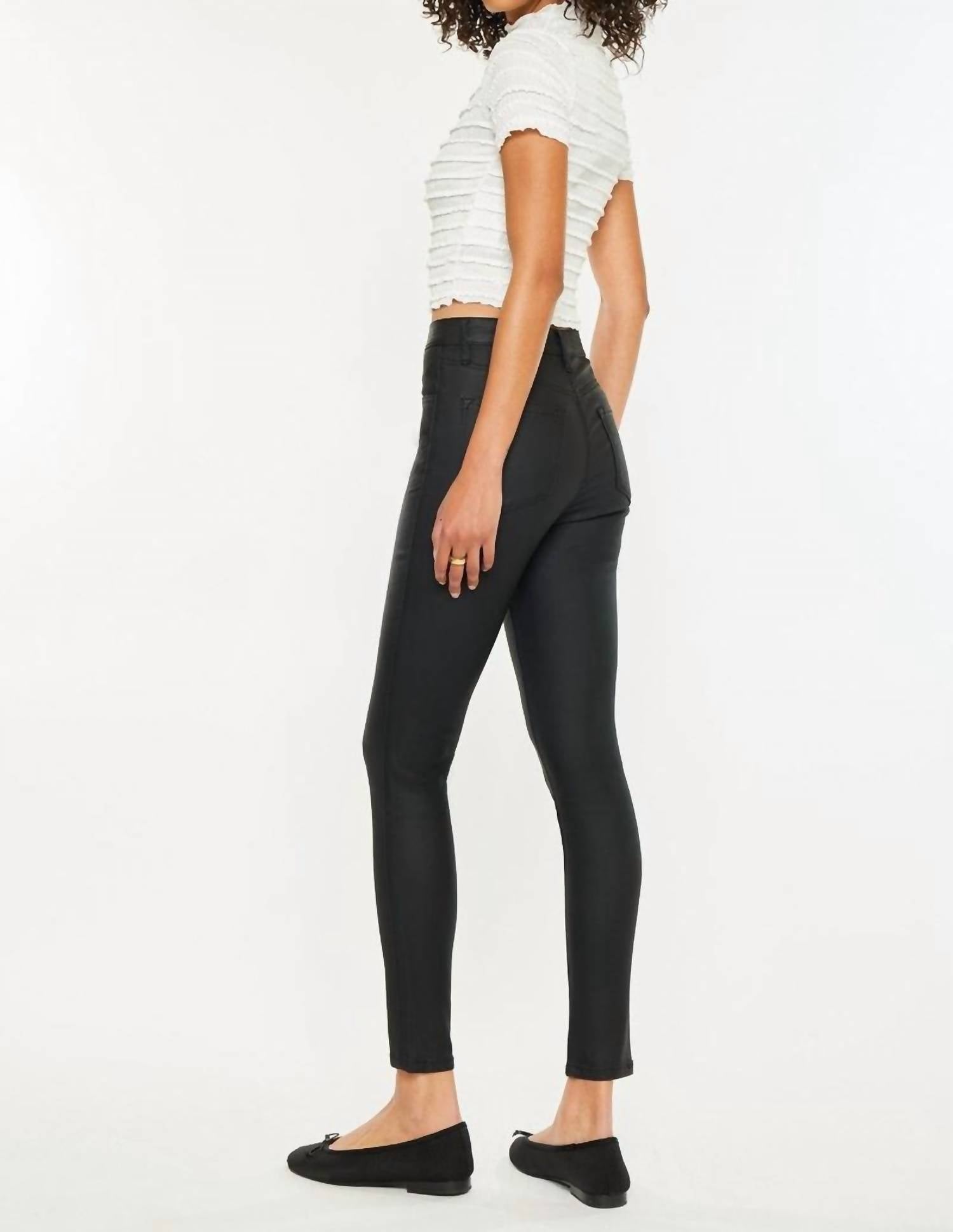 A skinny jean that is both flatering and comfortable. We love this style because it works great with boots, or without! Introducing the Lilah High Rise Skinny Jeans by KanCan, a perfect blend of comfort and style in classic black. Crafted from 76% Rayon, 21% Nylon, and 3% Spandex, these jeans offer a flattering slim fit with an exposed button closure and five classic pockets. Designed with a high-rise waist of 10.5 inches and a 27.5-inch inseam, they present a sleek, versatile silhouette. Care is straightforward with machine wash instructions, making them a practical addition to your wardrobe staples.