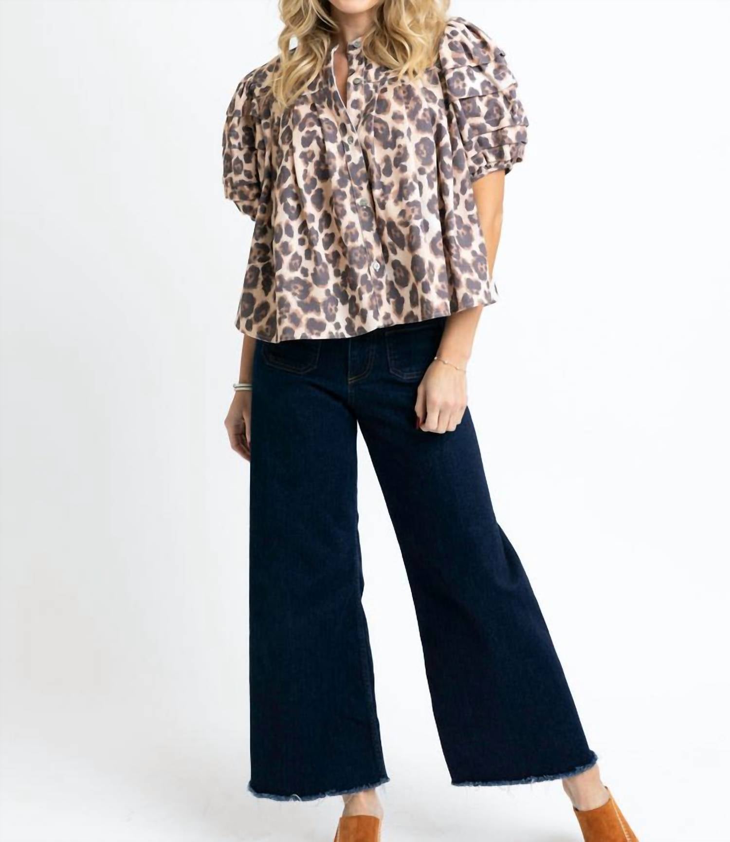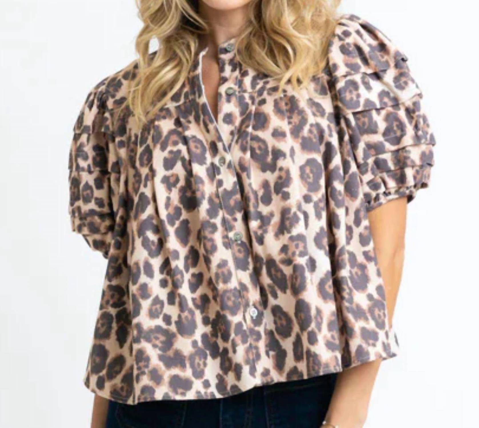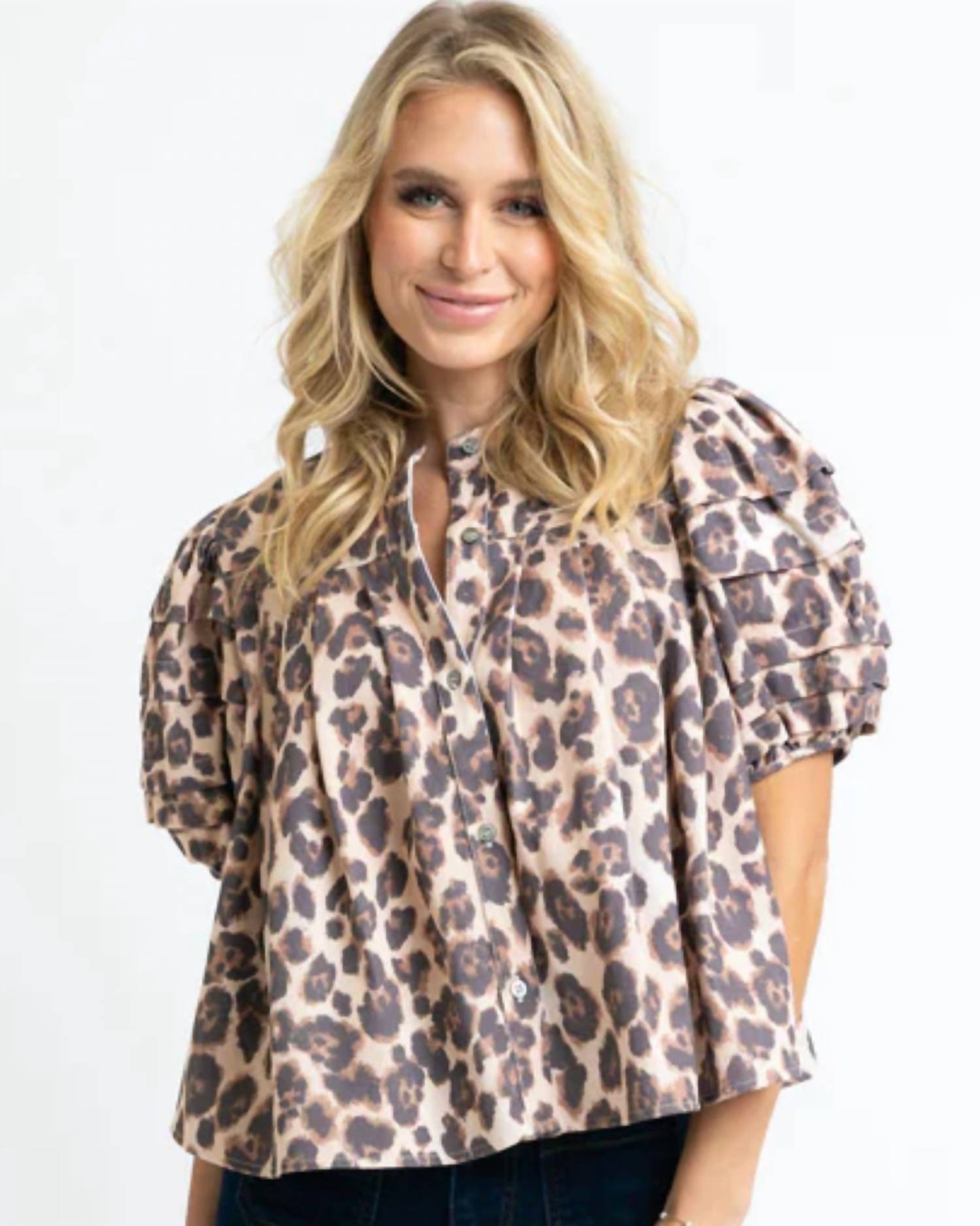 A versatile blouse that works from desk to dinner! Introducing the Callie Puff Sleeves Top by Karlie, a bold statement piece featuring short balloon sleeves in a striking leopard print. Crafted from 100% cotton, it's designed for both comfort and style with a classic crewneck and button closure. Elevate your spring wardrobe with this ultra-feminine silhouette perfect for engagements and Easter celebrations. Care for your top with a machine wash and lay flat to dry.