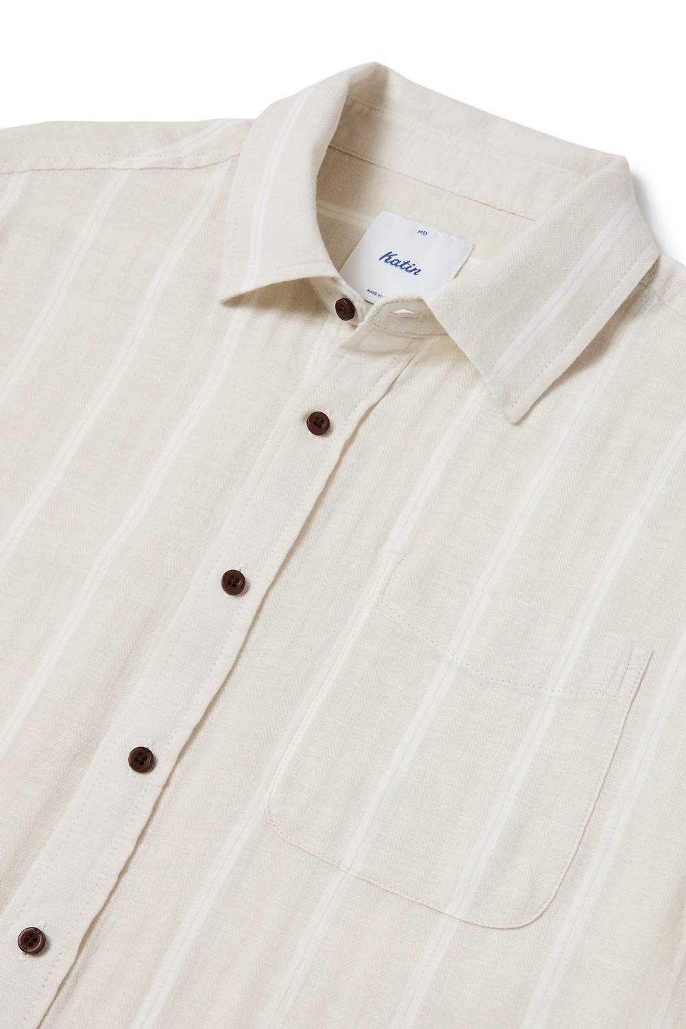 Explore the Alan Shirt by Katin, a staple in men's fashion designed with short sleeves and a timeless stripe pattern for a breezy summer vibe. This casual button-down is crafted from a 52% cotton and 48% linen herringbone blend, providing breathable comfort and style. Finished with a left chest pocket and clean-finished interior seams, it exemplifies relaxed sophistication. Closure: Button closure. Care: Gentle machine wash on cold and line dry to maintain quality.